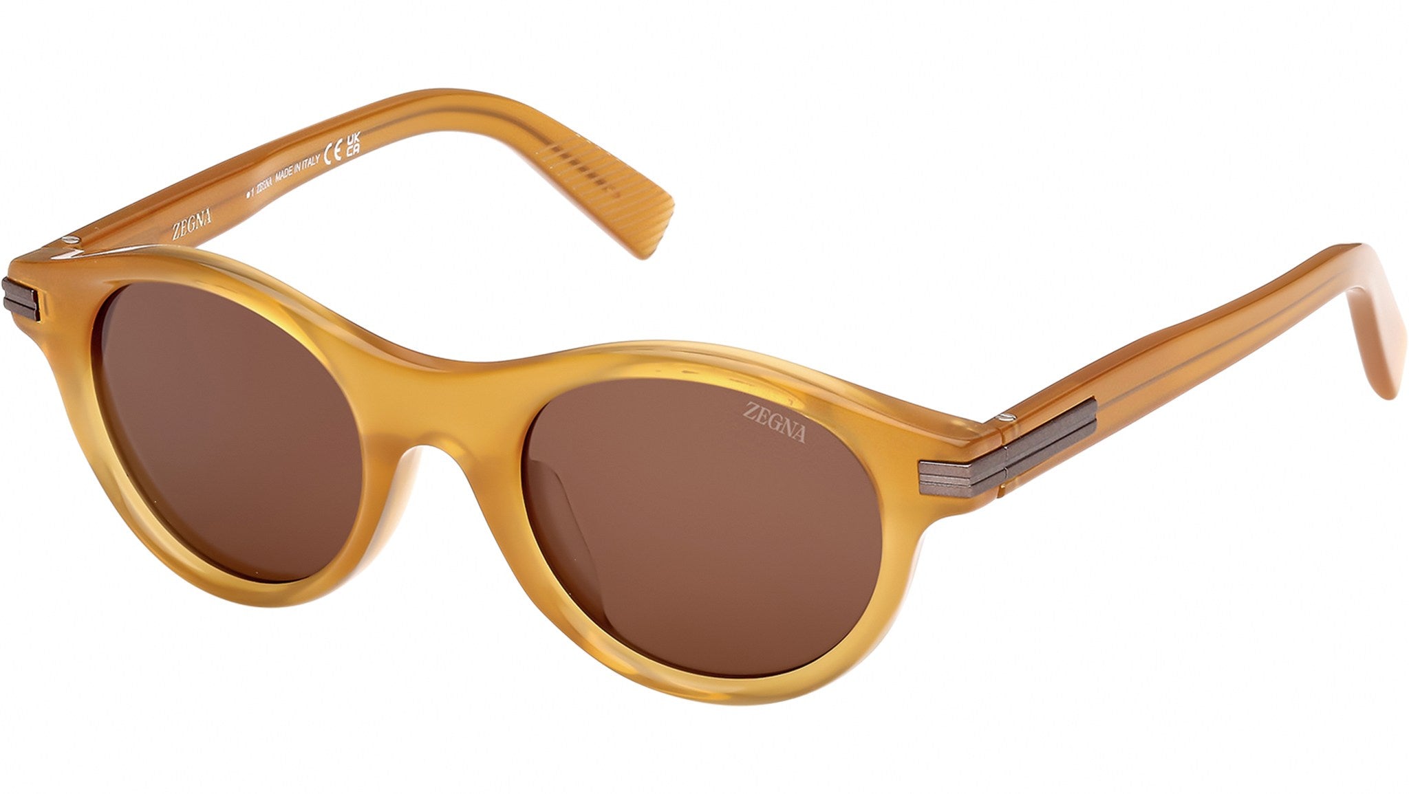 Occhiali da sole Zegna uomo modello EZ0271 con montatura marrone chiaro lucido full-rim in acetato e lenti color marrone. Codice Brand: EZ0271. Codice colore: 45E. Rivenditore autorizzato Ermenegildo Zegna online. Gli occhiali vengono consegnati con custodia e accessori originali e sono coperti da garanzia standard di 12 mesi del produttore.