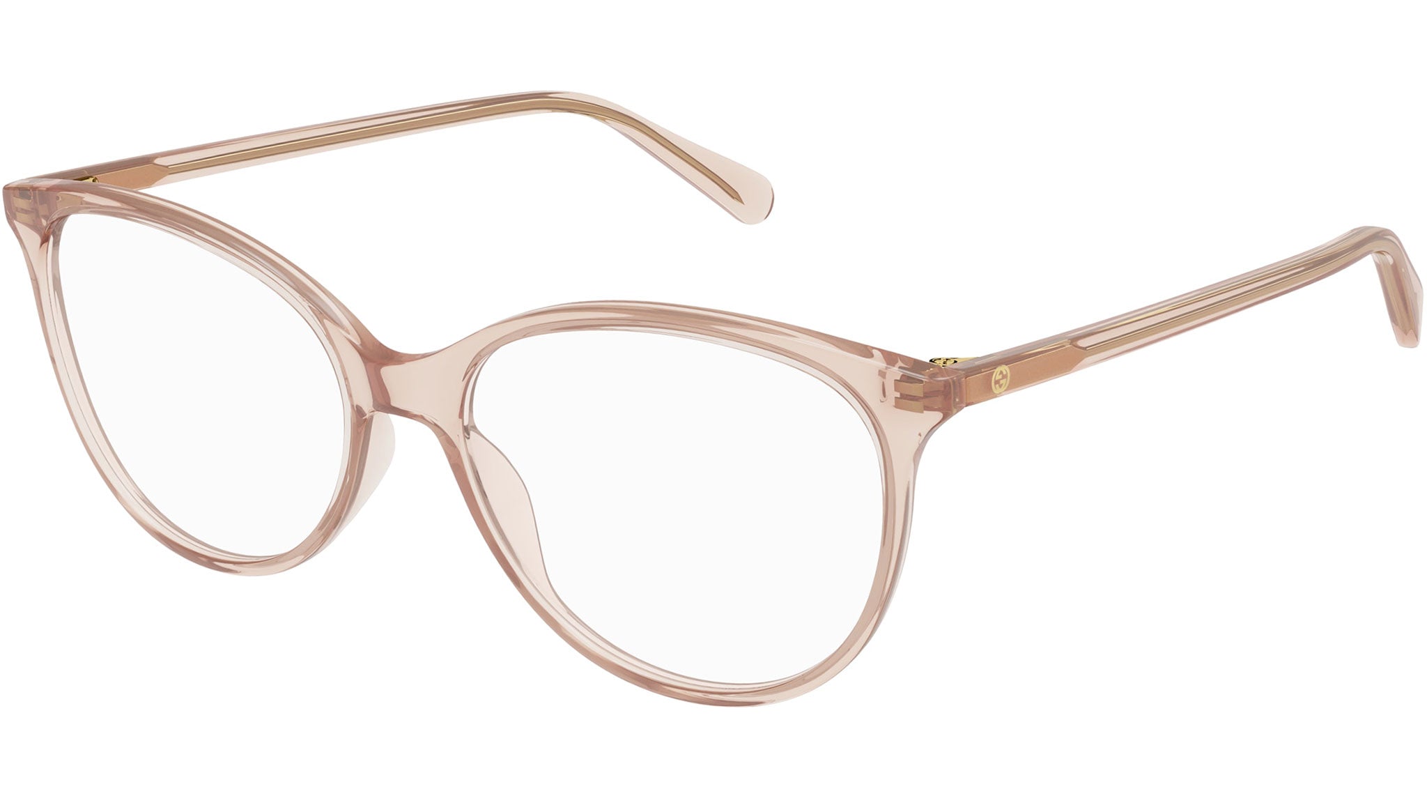 Occhiali da vista Gucci modello GG0550O linea GG Logo in acetato forma a gatto codice colore 012 pesca chiaro trasparente lucido con aste in beige nude e lenti demo. Rivenditore autorizzato Gucci online. Gli occhiali vengono consegnati con custodia e accessori originali e sono coperti dalla garanzia ufficiale di 12 mesi del produttore.