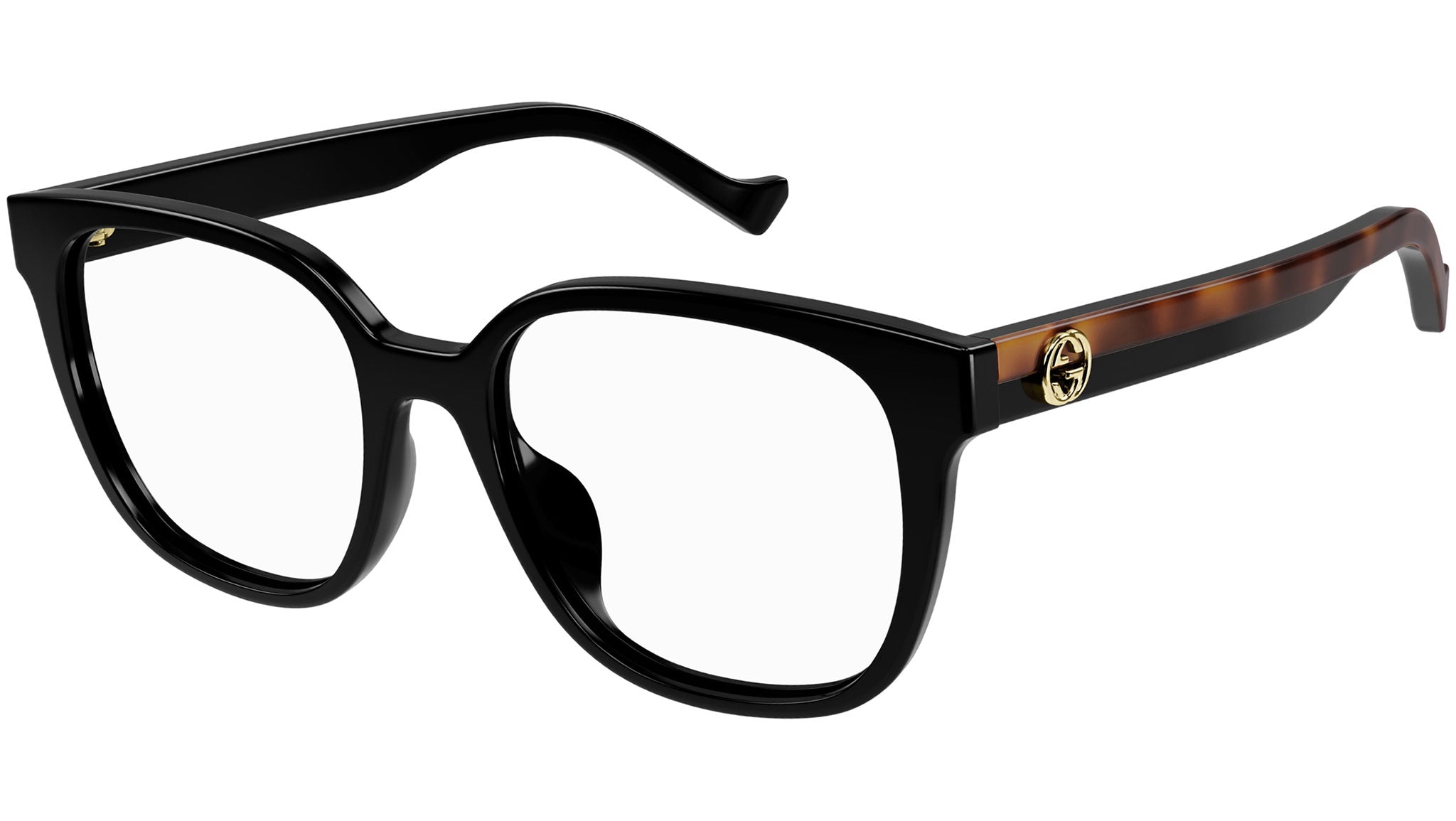 Occhiali da vista Gucci linea Web modello GG1305OA variante colore 001 nero lucido tinta unita con astine color tartaruga.