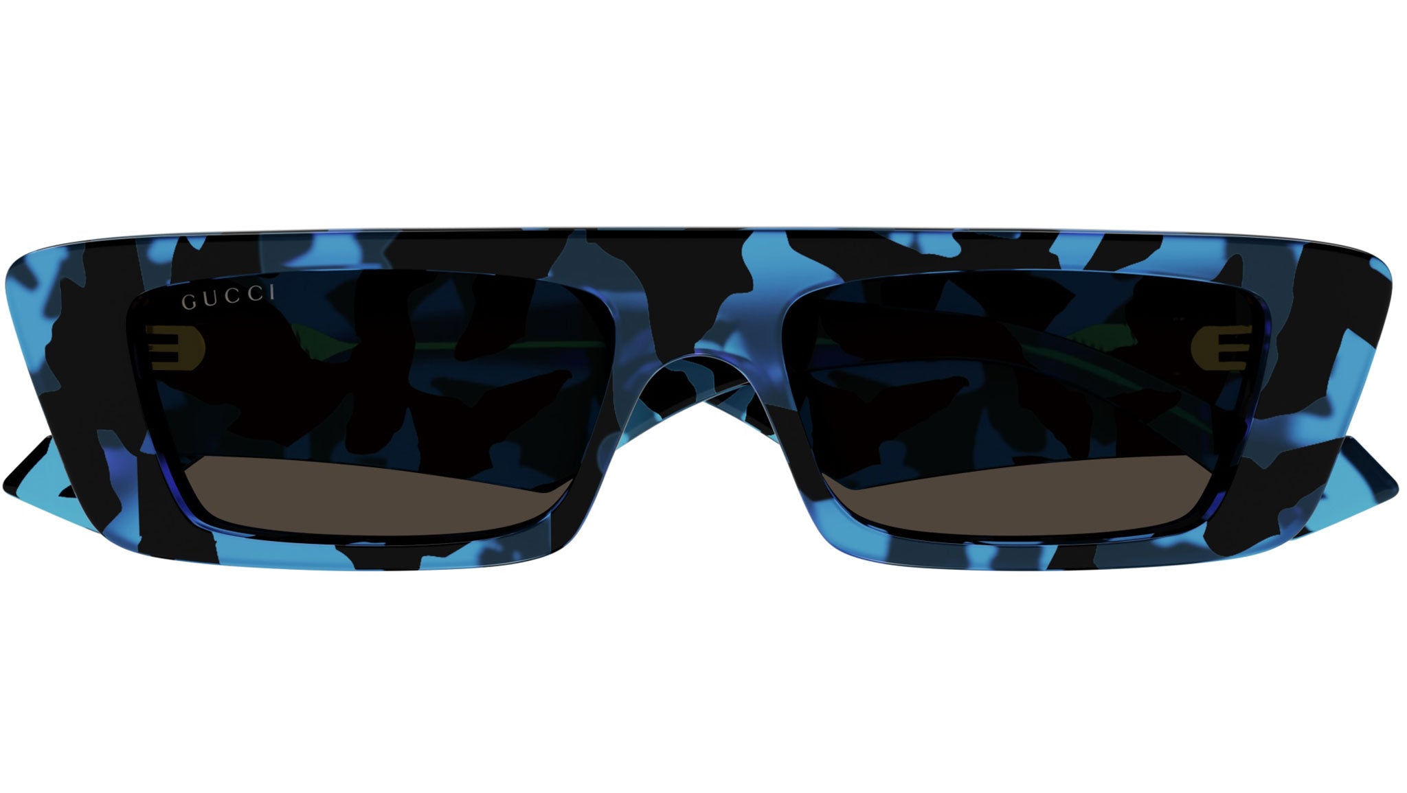 Occhiali da sole Gucci linea modello GG1331S variante colore 004 avana nero turchese maculato lucido con lenti color tartaruga.