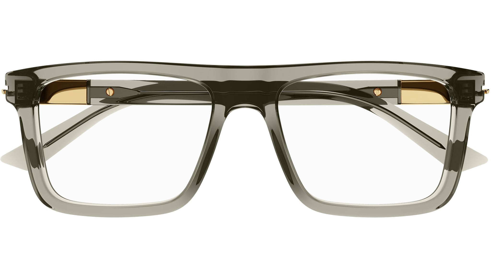Occhiali da vista Gucci Web modello GG1504O rettangolari in acetato riciclato codice colore 004 tortora trasparente lucido con astine marrone e lenti demo.
