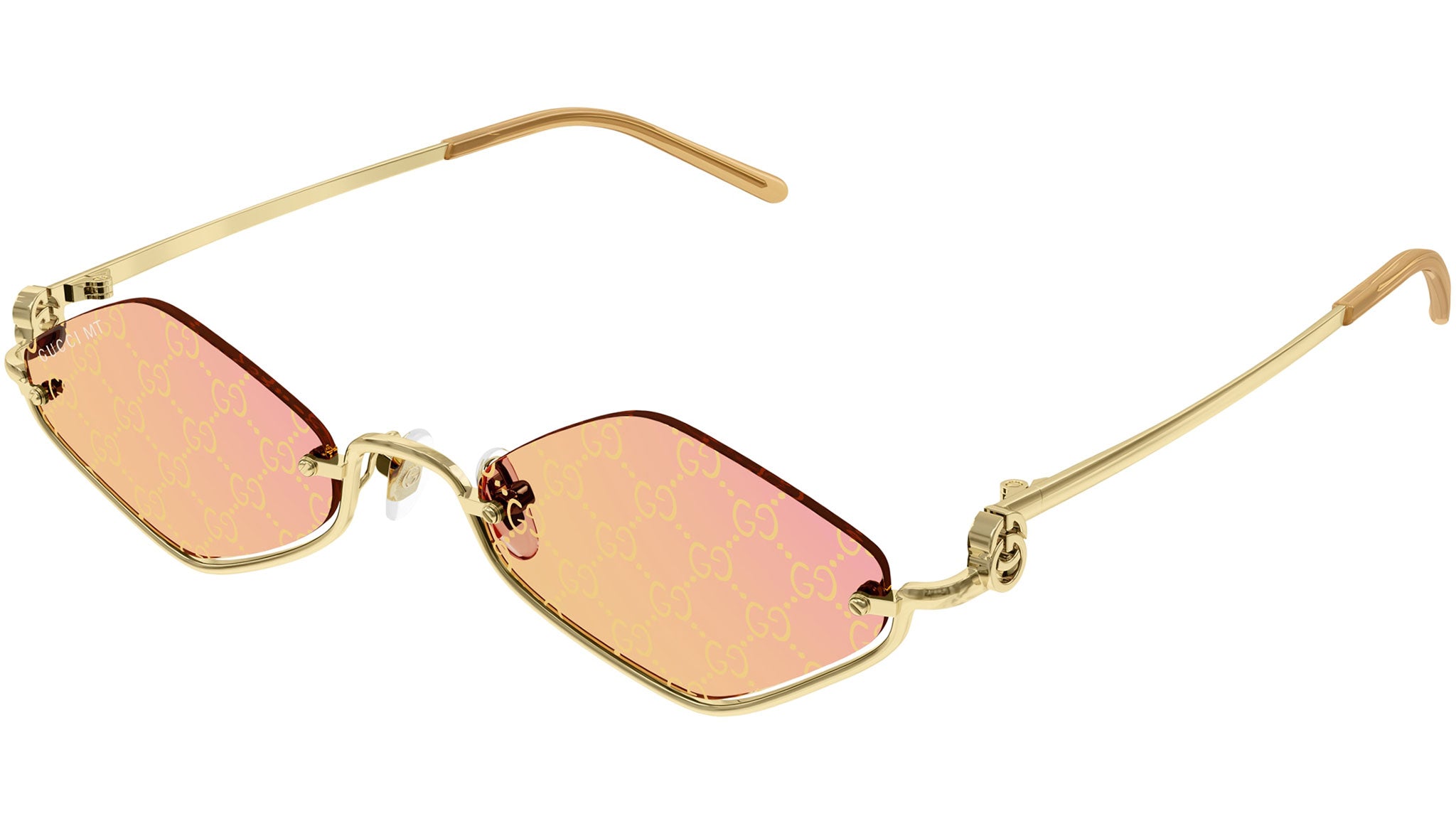Occhiali da sole Gucci linea GG Logo modello GG1604S geometrici in metallo codice colore 004 oro endura lucido con aste oro e lenti color giallo scuro solido + mini logo Guccissima.