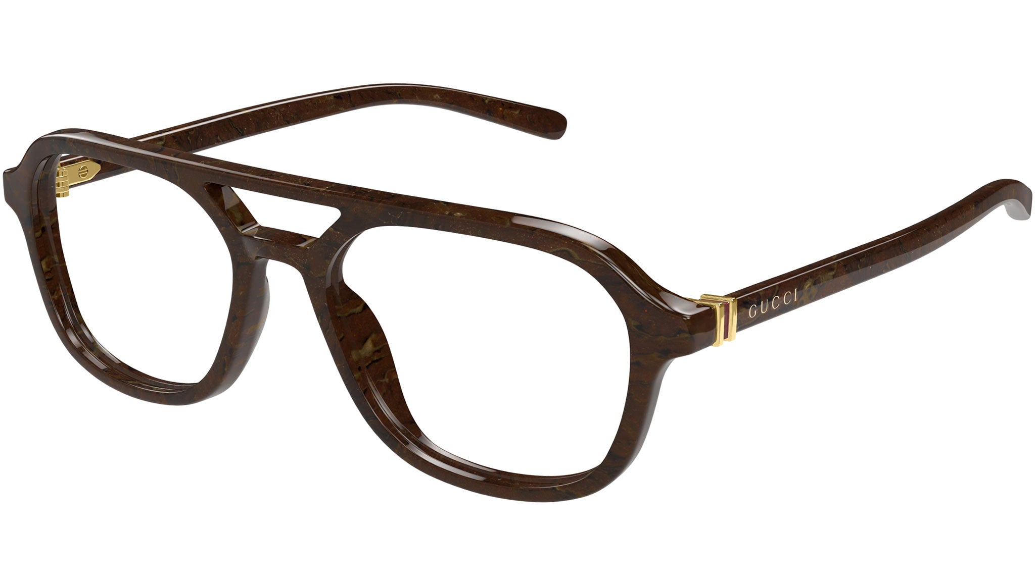 Occhiali da vista Gucci modello GG1673O linea Web in acetato riciclato forma aviatore codice colore 003 marrone radica scuro lucido con aste in marrone e lenti demo. Rivenditore autorizzato Gucci online. Gli occhiali vengono consegnati con custodia e accessori originali e sono coperti dalla garanzia ufficiale di 12 mesi del produttore.