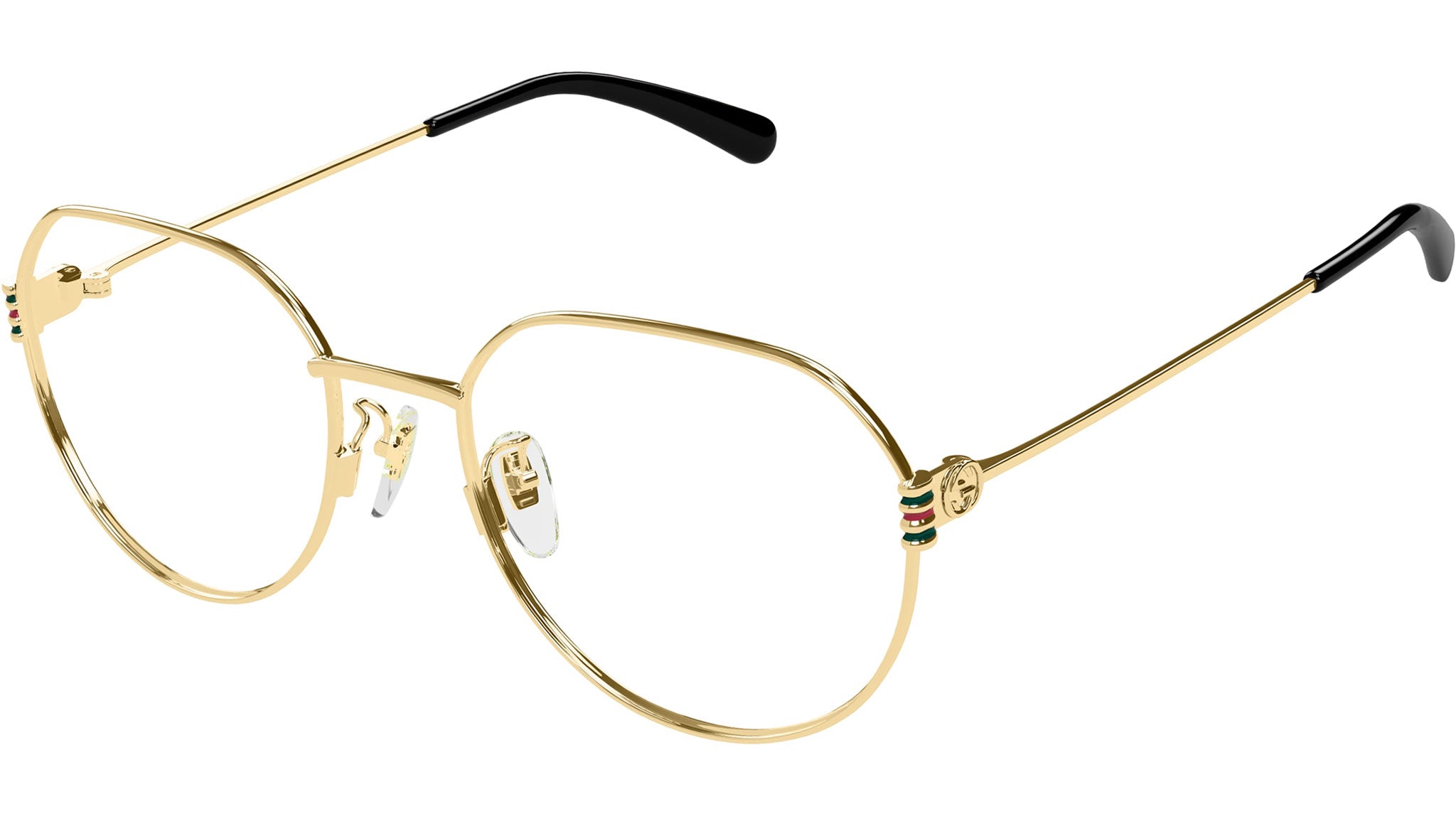 Occhiali da vista Gucci modello GG1675OK linea Fork in metallo forma pantos codice colore 001 oro endura lucido con aste in oro e lenti demo. Rivenditore autorizzato Gucci online. Gli occhiali vengono consegnati con custodia e accessori originali e sono coperti dalla garanzia ufficiale di 12 mesi del produttore.