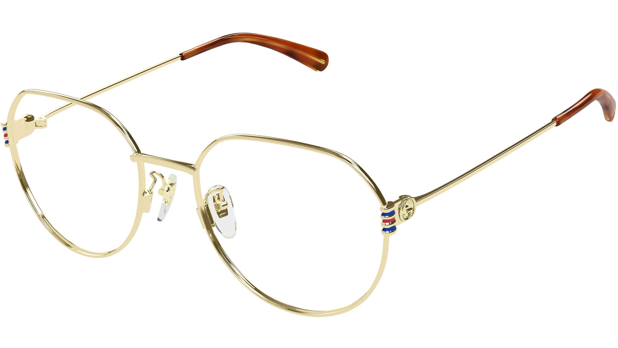 Occhiali da vista Gucci modello GG1675OK linea Fork in metallo forma pantos codice colore 002 oro endura lucido con aste in oro e lenti demo. Rivenditore autorizzato Gucci online. Gli occhiali vengono consegnati con custodia e accessori originali e sono coperti dalla garanzia ufficiale di 12 mesi del produttore.