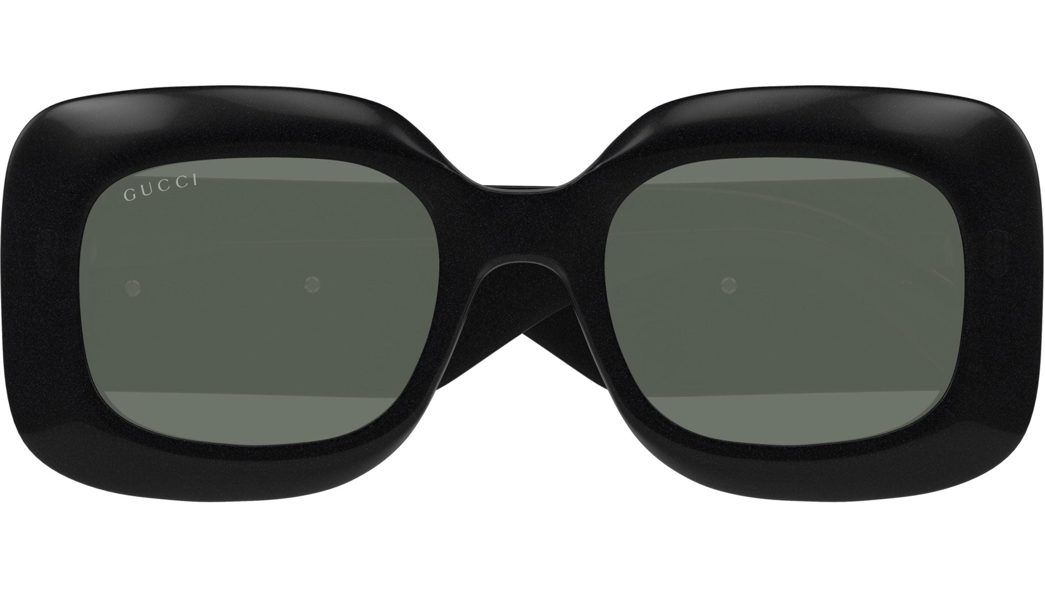Occhiali da sole Gucci modello GG1695S linea GG Logo in acetato riciclato forma rettangolare codice colore 003 blu notte scuro lucido glitter cosmic con aste nero e lenti grigio chiaro tinta unita. Rivenditore autorizzato Gucci online. Gli occhiali vengono consegnati con custodia e accessori originali e sono coperti dalla garanzia ufficiale di 12 mesi del produttore.