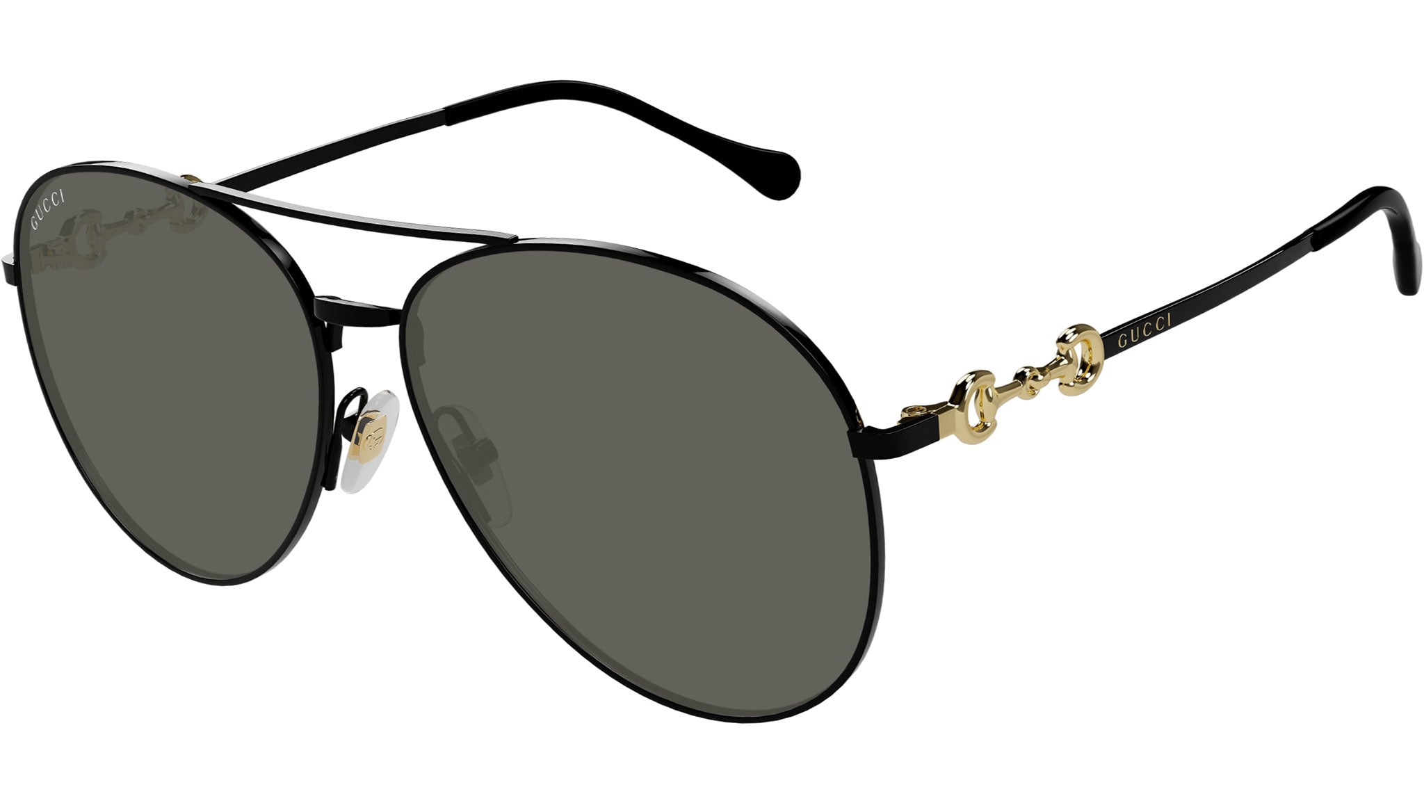 Occhiali da sole Gucci modello GG1698S linea Horsebit in metallo forma aviatore codice colore 001 nero lucido tinta unita con aste nero e lenti grigio tinta unita. Rivenditore autorizzato Gucci online. Gli occhiali vengono consegnati con custodia e accessori originali e sono coperti dalla garanzia ufficiale di 12 mesi del produttore.
