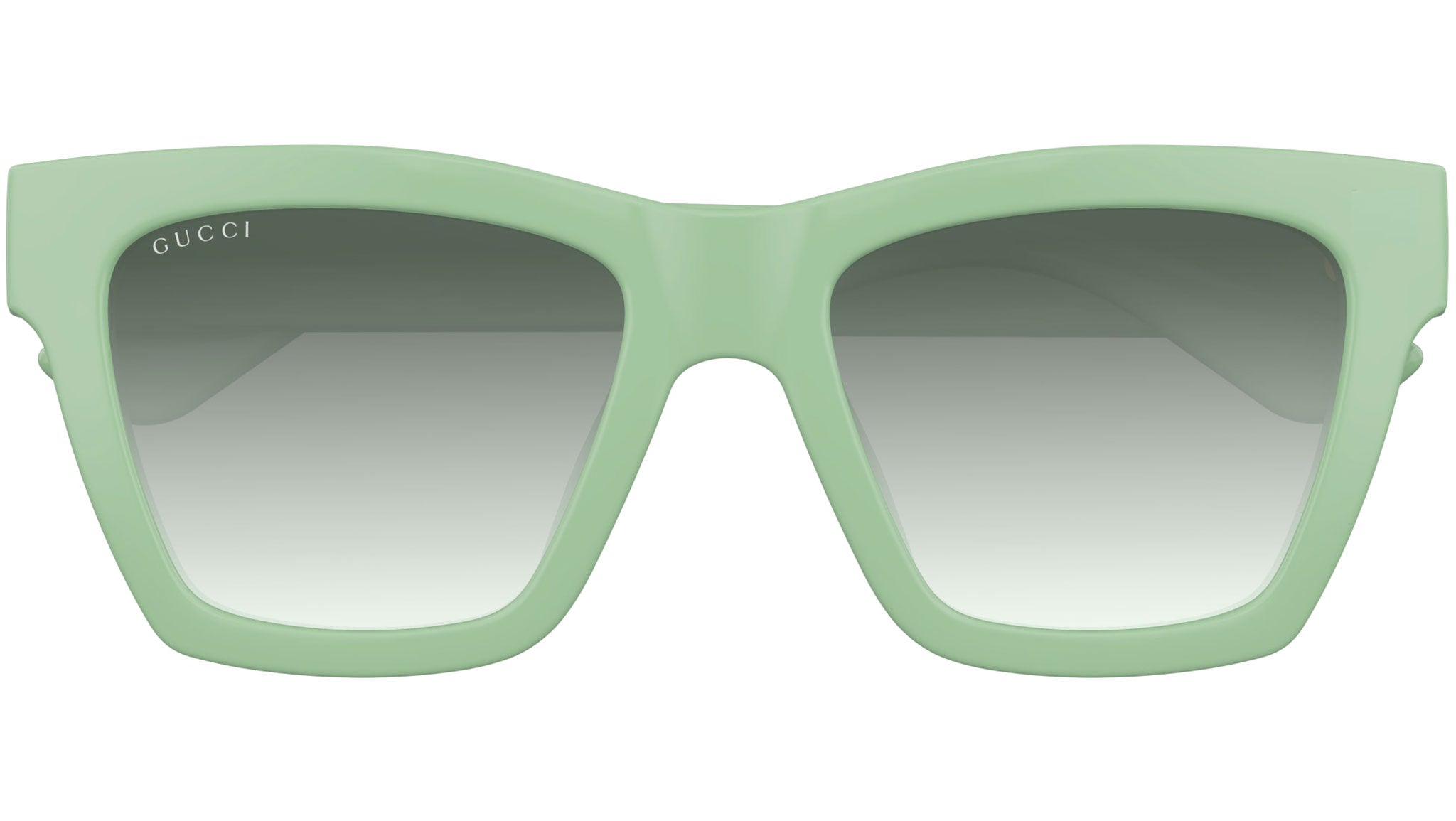 Occhiali da sole Gucci modello GG1714S linea GG Logo in iniettato forma a gatto codice colore 004 nero lucido con aste verde e lenti grigio scuro sfumato grigio chiaro. Rivenditore autorizzato Gucci online. Gli occhiali vengono consegnati con custodia e accessori originali e sono coperti dalla garanzia ufficiale di 12 mesi del produttore.