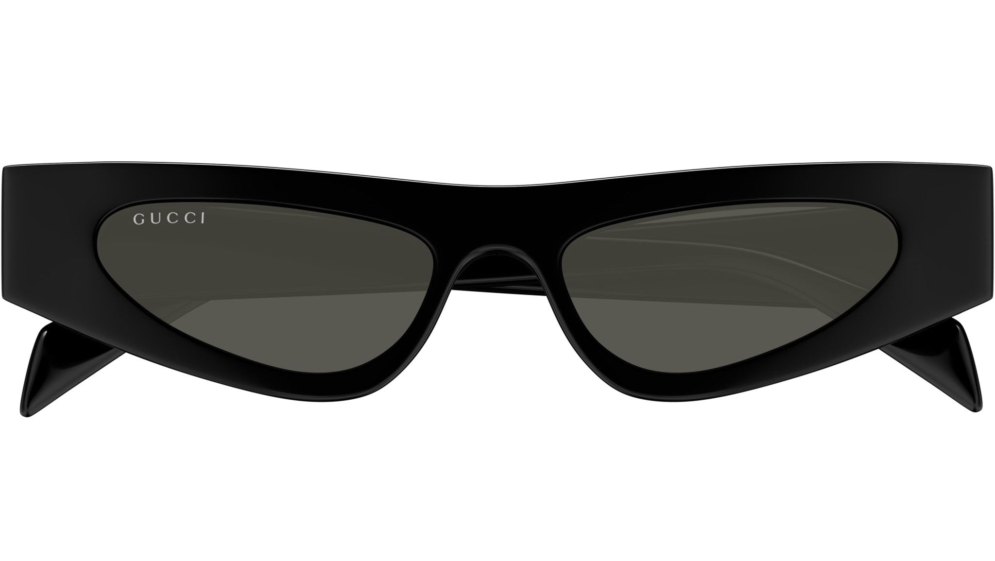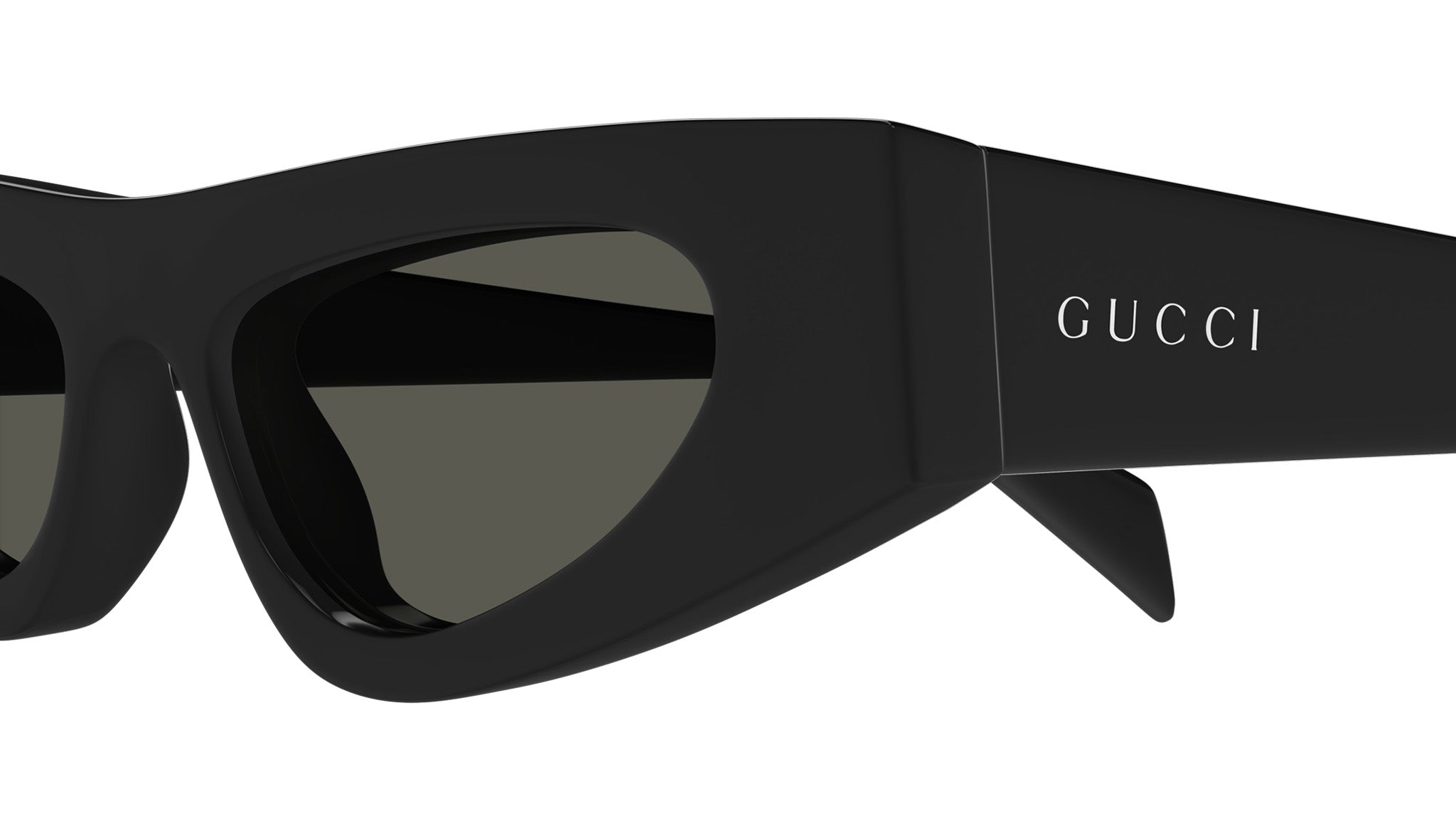 Occhiali da sole Gucci modello GG1779S linea Fashion in acetato riciclato forma a gatto codice colore 001 nero lucido con aste nero e lenti grigio tinta unita. Rivenditore autorizzato Gucci online. Gli occhiali vengono consegnati con custodia e accessori originali e sono coperti dalla garanzia ufficiale di 12 mesi del produttore.