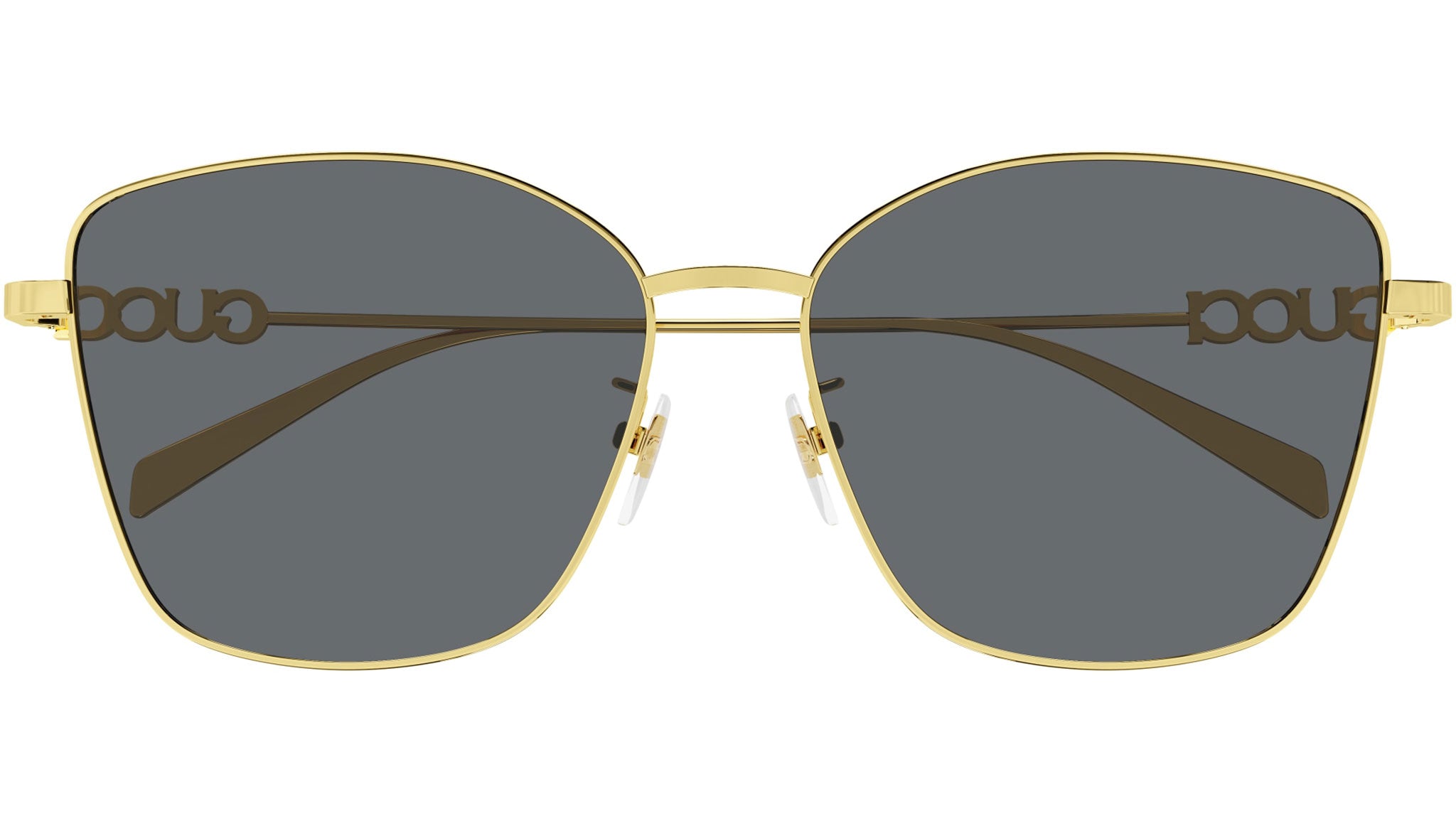 Occhiali da sole Gucci GG1805SA 001 donna con montatura butterfly in metallo oro giallo e lenti grigio tinta unita. Linea: Lettering. Codice modello: GG1805SA. Codice colore: 001. Made in Japan. Rivenditore autorizzato Gucci online. Gli occhiali vengono consegnati con custodia e accessori originali e sono coperti dalla garanzia ufficiale di 12 mesi del produttore.