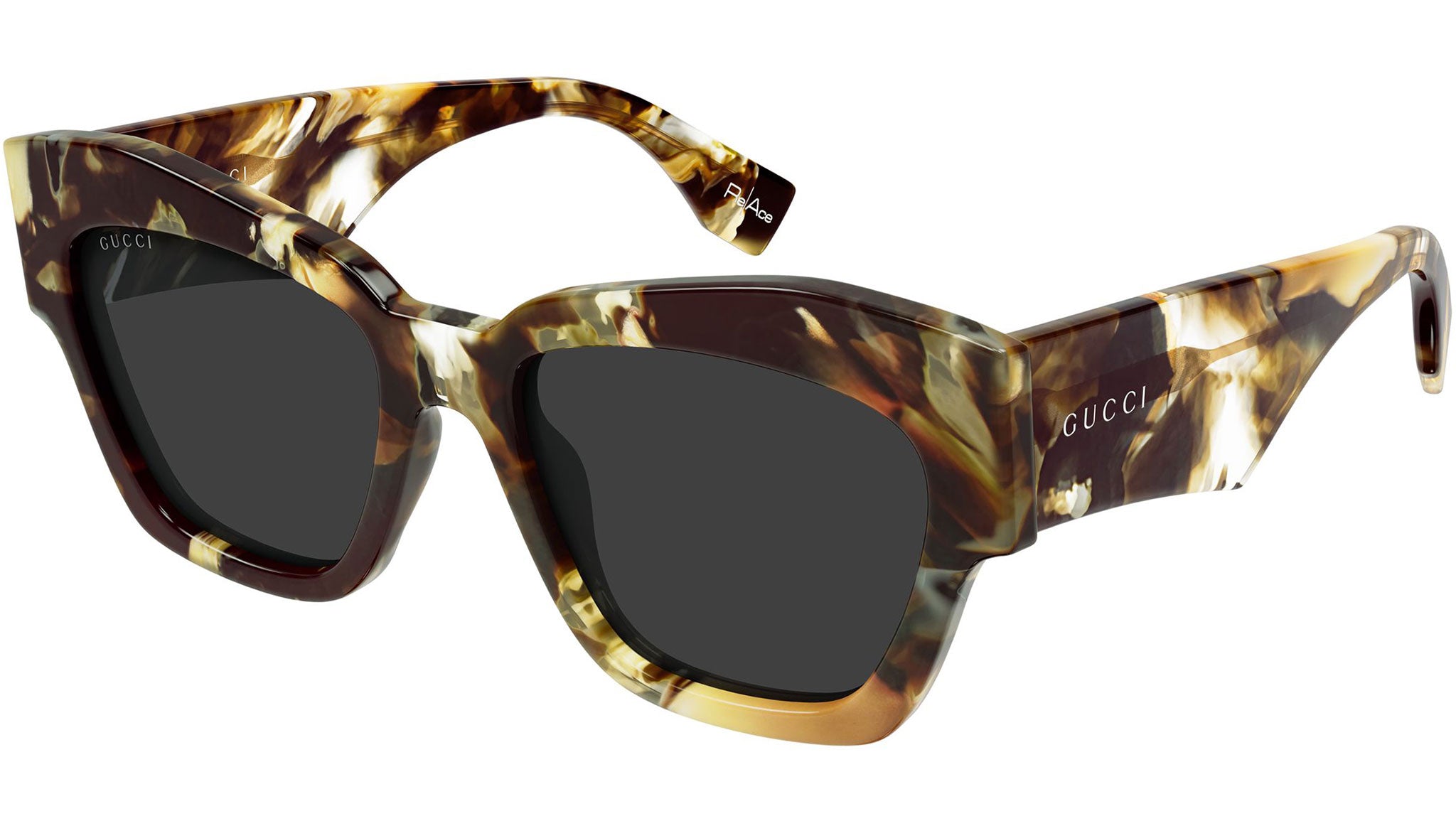 Occhiali da sole Gucci GG2150S 004 donna con montatura cat eye in acetato riciclato avana verde prezioso maxi-maculato lucido e lenti grigio tinta unita in bio nylon. Linea: Institutional Logo. Codice modello: GG2150S. Codice colore: 004. Made in Italy. Rivenditore autorizzato Gucci online. Gli occhiali vengono consegnati con custodia e accessori originali e sono coperti dalla garanzia ufficiale di 12 mesi del produttore.