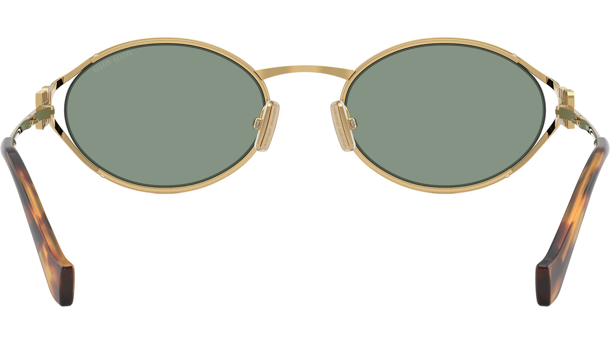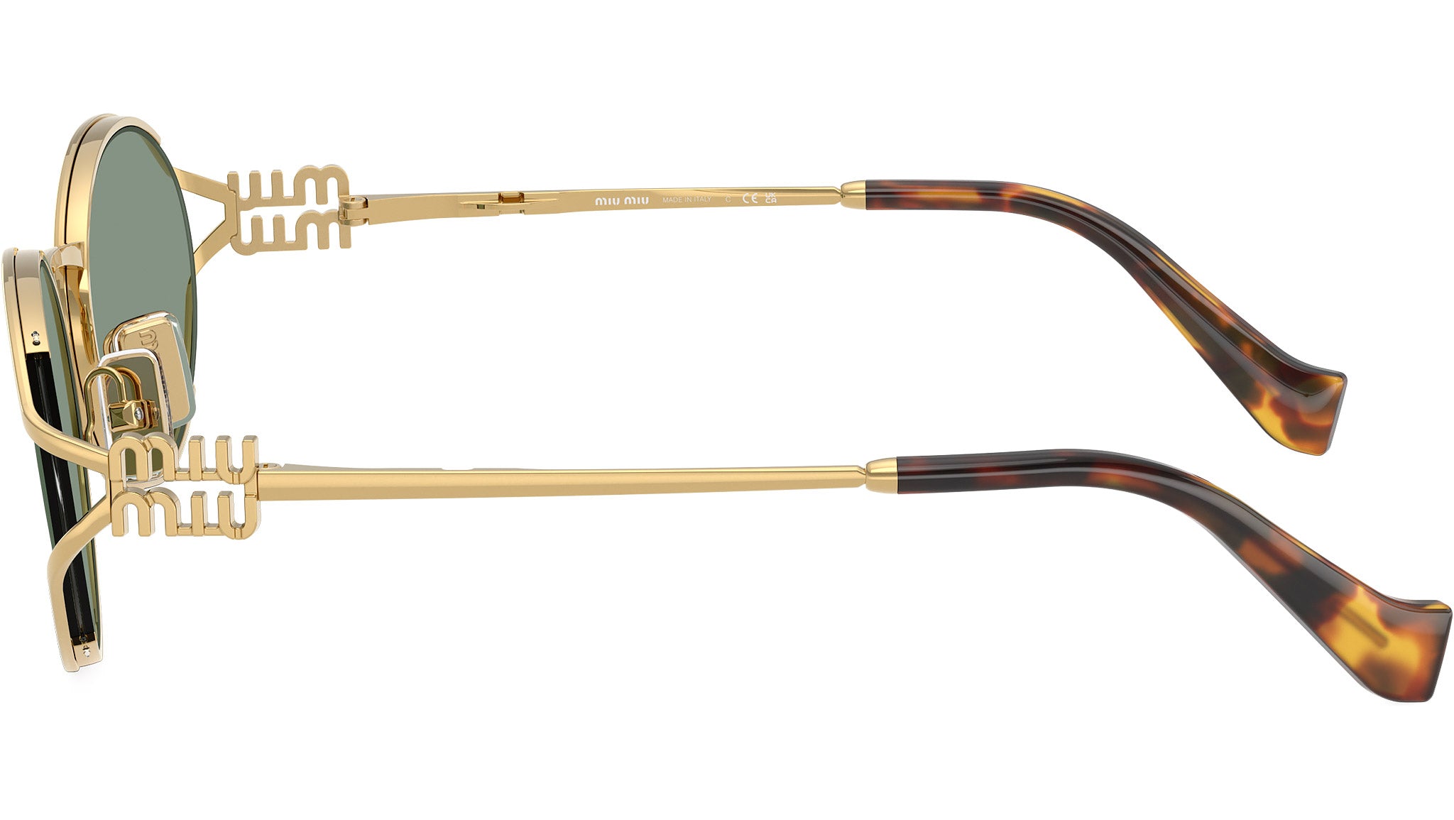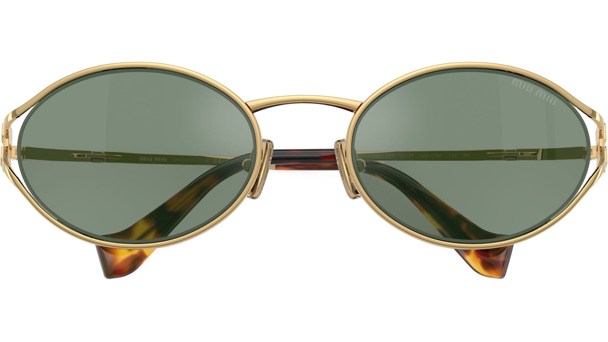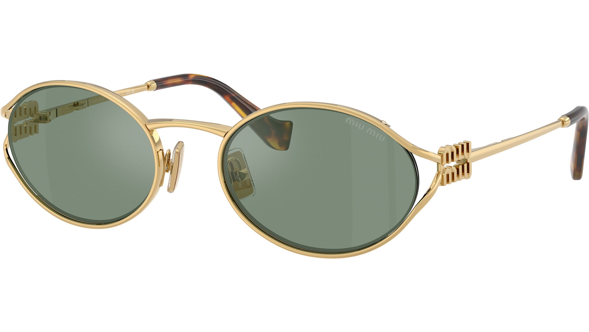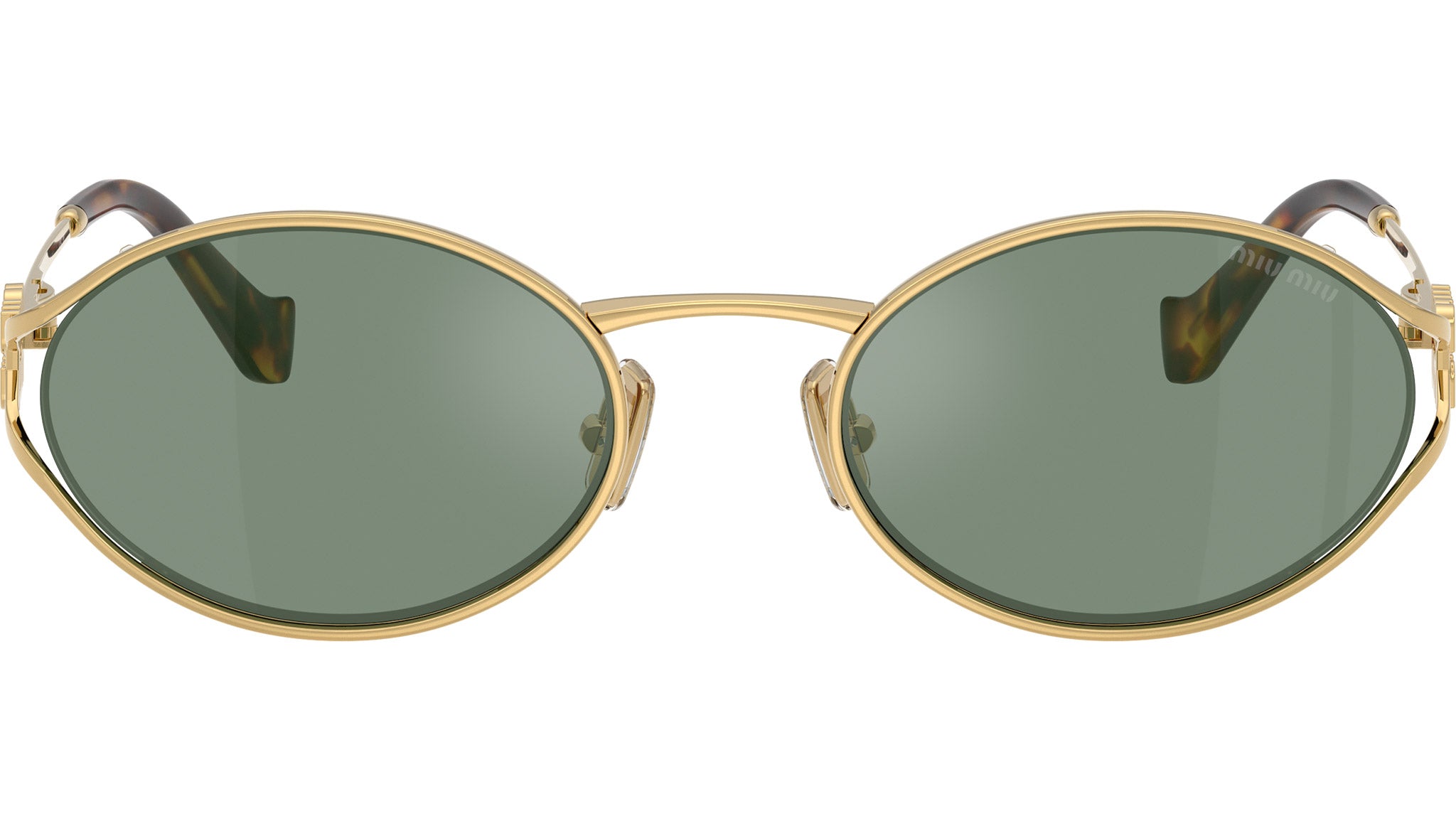 Occhiali da sole Miu Miu MU 52YS 5AK04M donna con montatura ovale in metallo oro e lenti in bio poliammide color verde a specchio argento interno. Vestibilità a ponte alto. Linea: Irreverently Sophisticated. Codice modello: 0MU 52YS. Codice colore: 5AK04M. Made in Italy. Rivenditore autorizzato Miu Miu online. Gli occhiali vengono consegnati con custodia e accessori originali e sono coperti dalla garanzia ufficiale di 12 mesi del produttore.