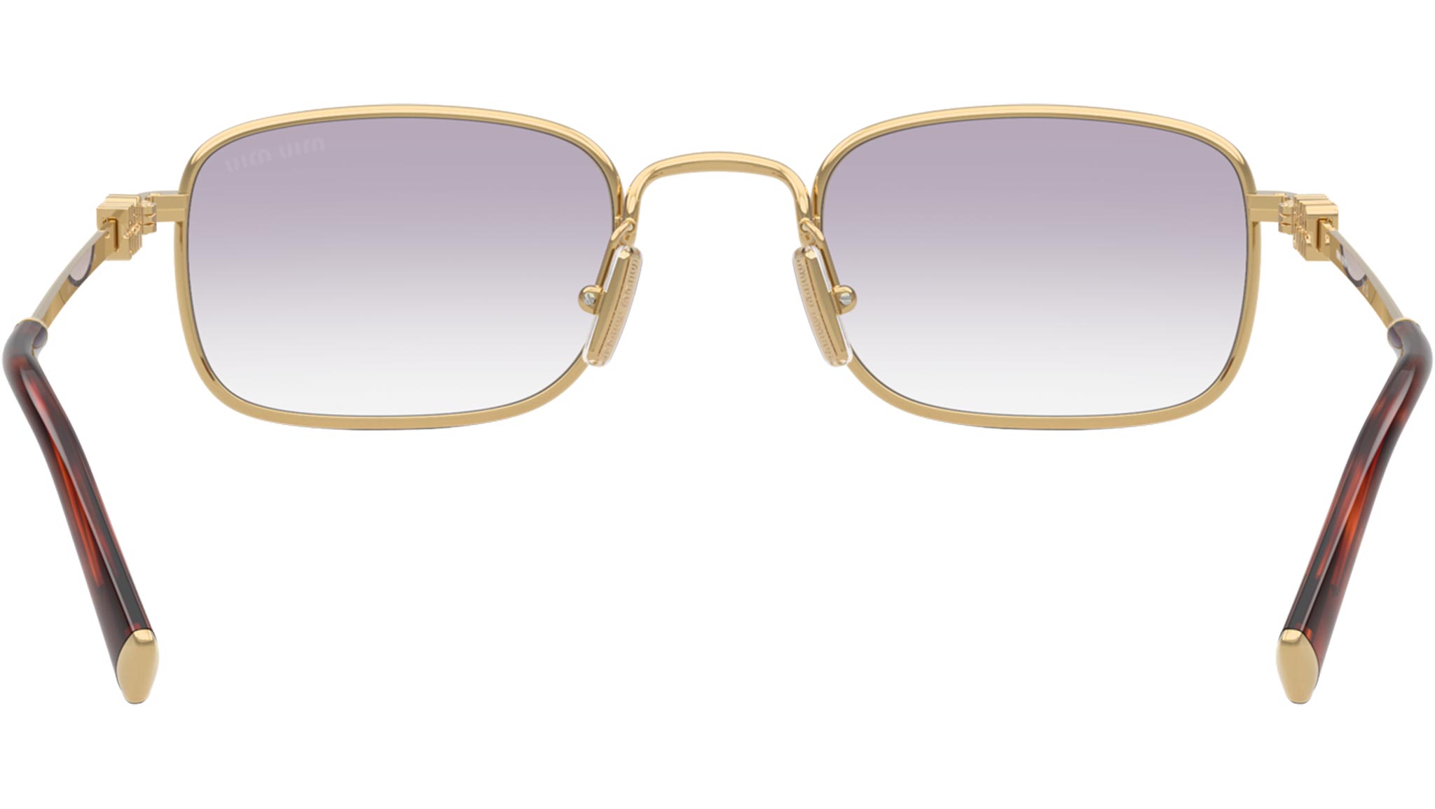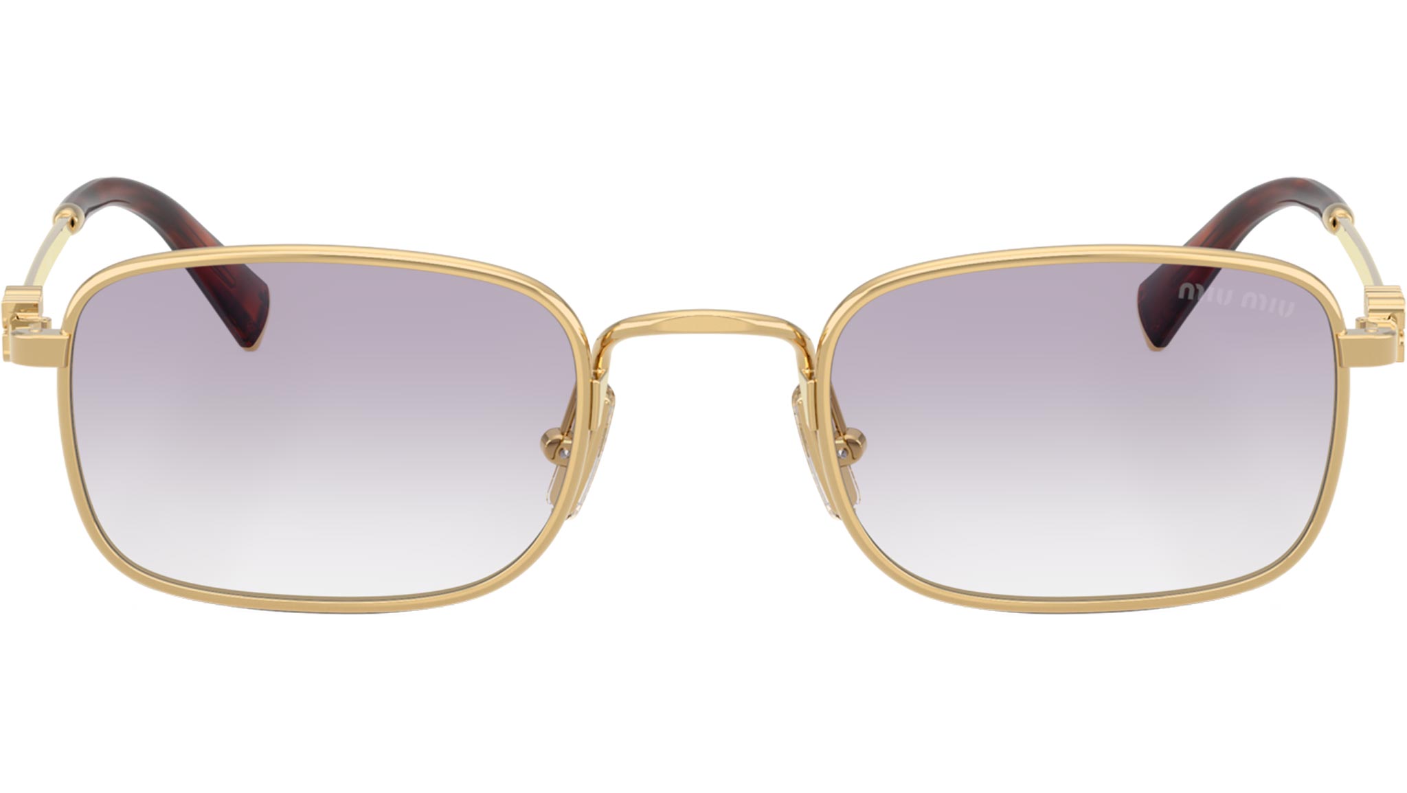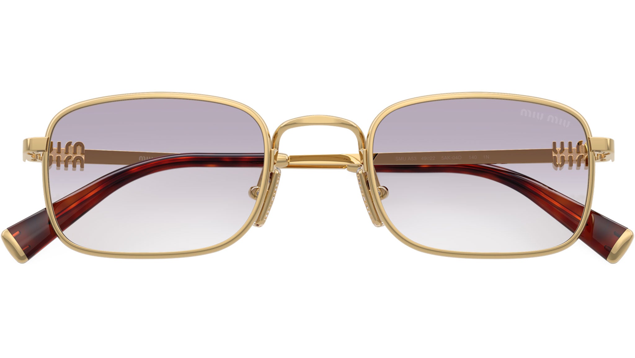 Occhiali da sole Miu Miu MU A53S 5AK04O donna con montatura rettangolare in metallo oro e lenti in poliammide color trasparente sfumato grigio scuro. Naselli regolabili. Linea: Miu Regard. Codice modello: 0MU A53S. Codice colore: 5AK04O. Made in Italy. Rivenditore autorizzato Miu Miu online. Gli occhiali vengono consegnati con custodia e accessori originali e sono coperti dalla garanzia ufficiale di 12 mesi del produttore.