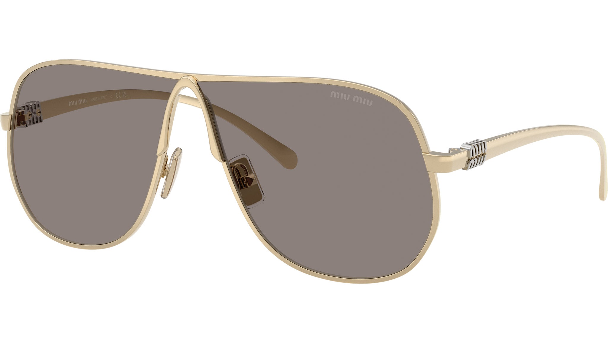 Occhiali da sole Miu Miu MU A56S ZVN80Q donna con montatura aviatore in metallo oro pallido e lenti in bio poliammide color grigio scuro. Naselli regolabili. Linea: Main Collection. Codice modello: 0MU A56S. Codice colore: ZVN80Q. Made in Italy. Rivenditore autorizzato Miu Miu online. Gli occhiali vengono consegnati con custodia e accessori originali e sono coperti dalla garanzia ufficiale di 12 mesi del produttore.