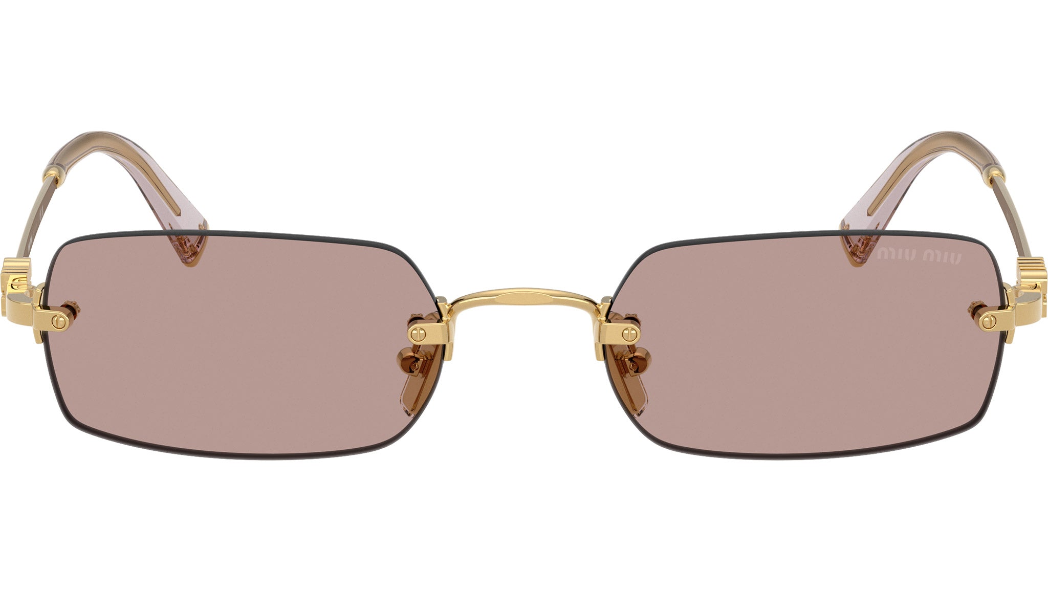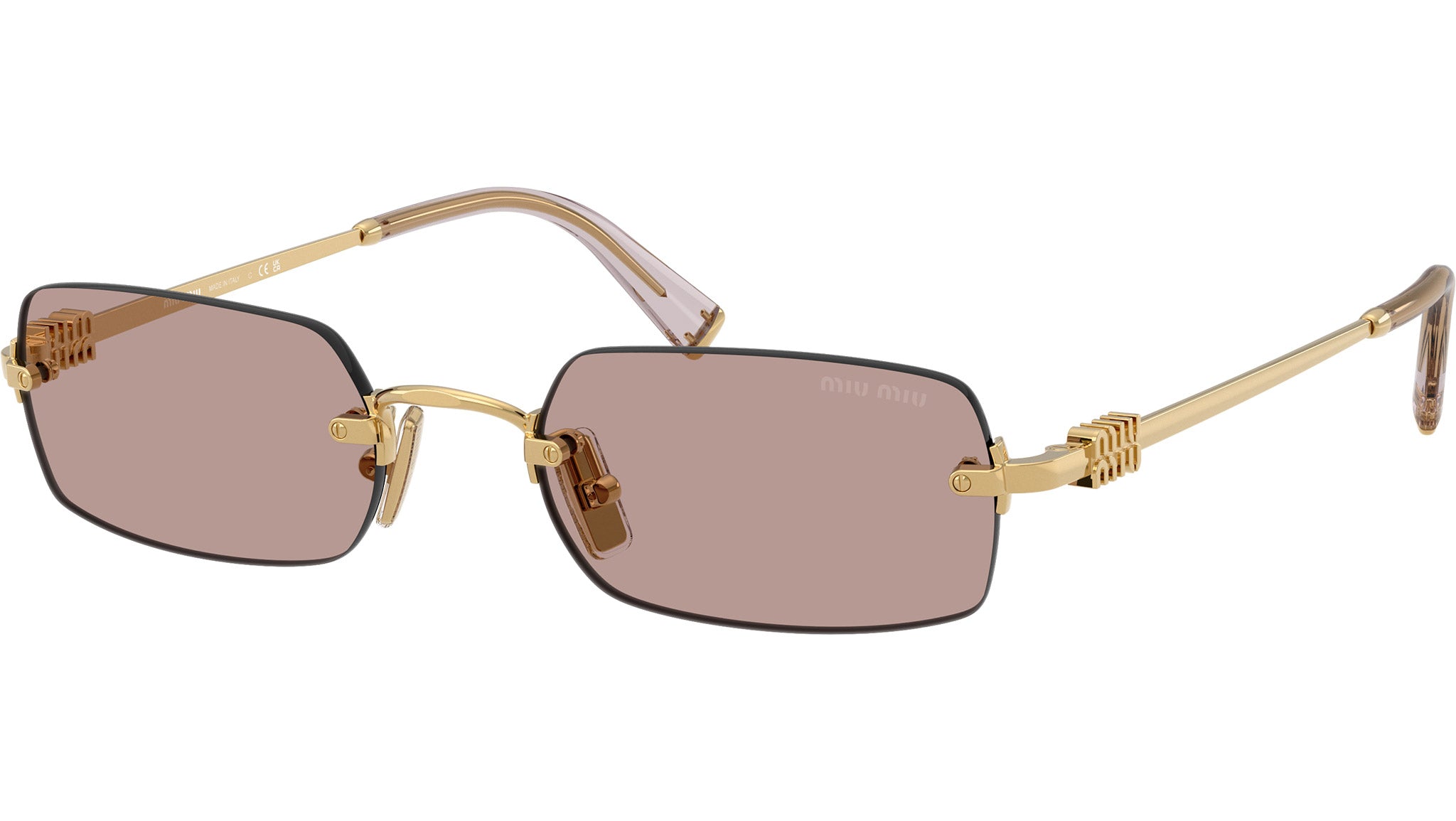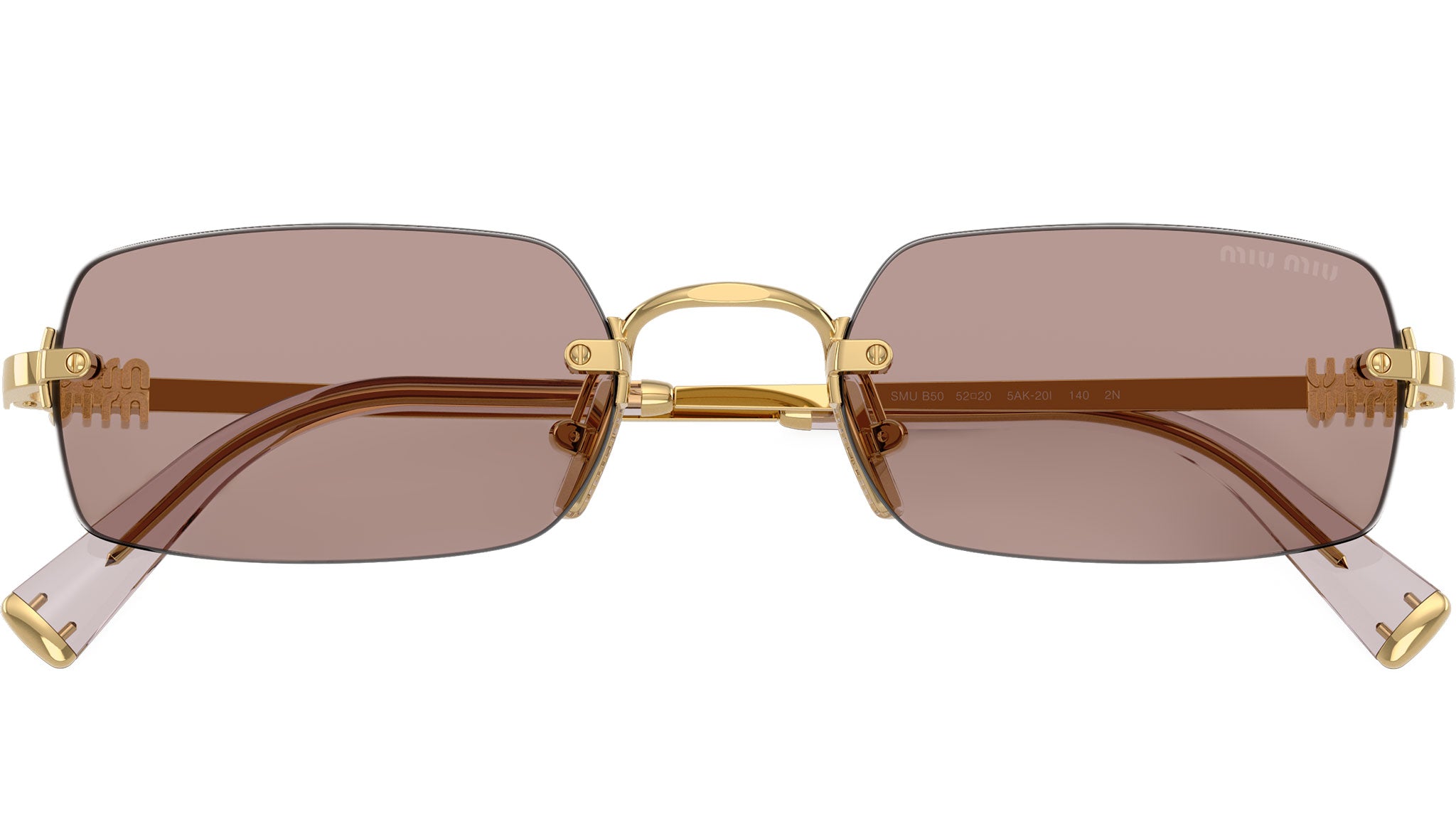 Occhiali da sole Miu Miu MU B50S 5AK20I donna con montatura rettangolare in metallo oro e lenti in bio poliammide color marrone chiaro sfumato. Naselli regolabili. Linea: Main Collection. Codice modello: 0MU B50S. Codice colore: 5AK20I. Made in Italy. Rivenditore autorizzato Miu Miu online. Gli occhiali vengono consegnati con custodia e accessori originali e sono coperti dalla garanzia ufficiale di 12 mesi del produttore.