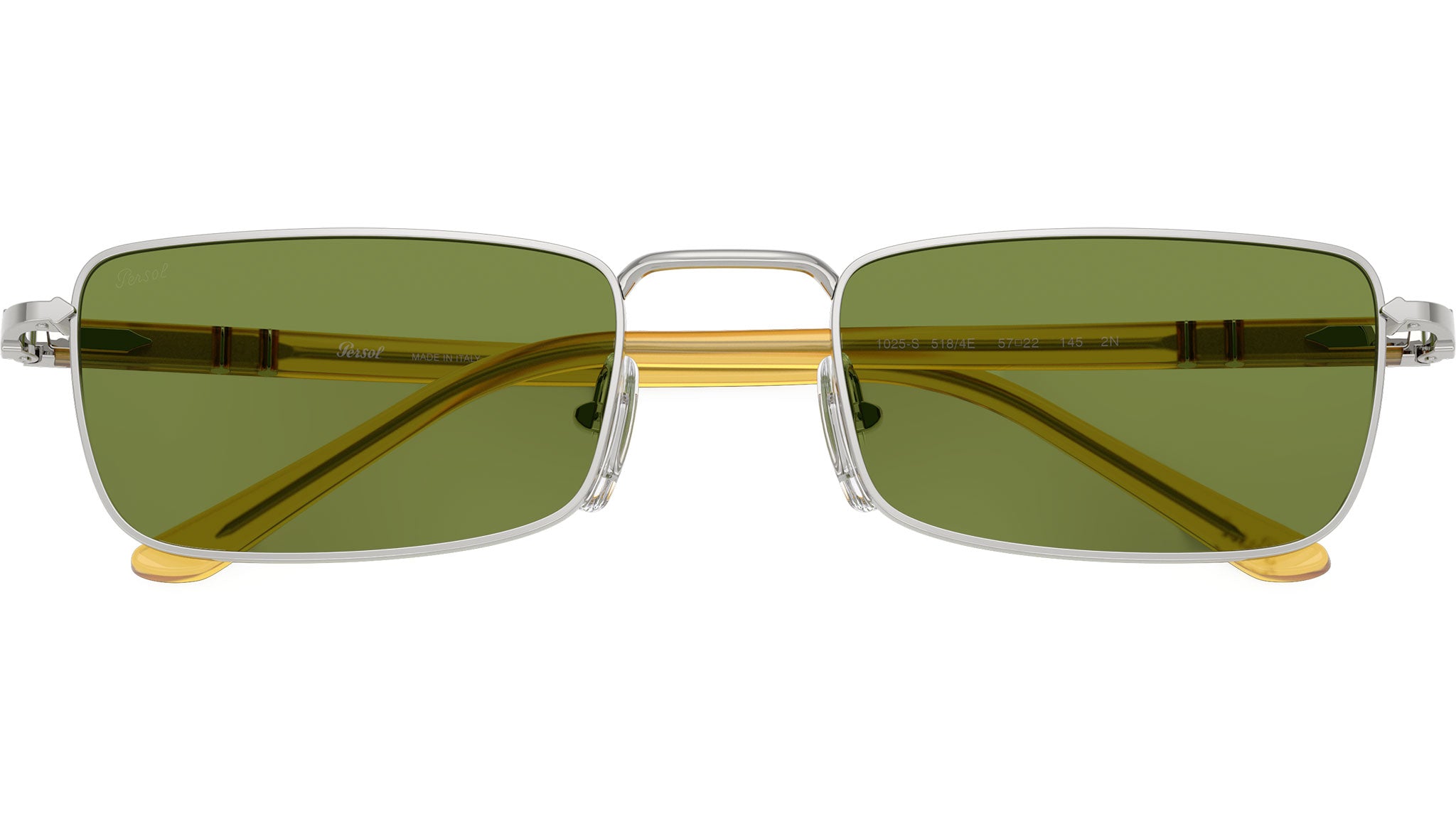 Occhiali da sole Persol unisex modello PO1025S 518/4E con montatura rettangolare in metallo argento e lenti in cristallo verde base 2.5. Naselli regolabili. Linea: Sartoria. Codice Brand: 0PO1025S. Codice colore: 518/4E. Rivenditore autorizzato online Persol Eyewear. Ogni prodotto Persol viene consegnato con astuccio originale e accessori ed è coperto da garanzia del produttore di 12 mesi.