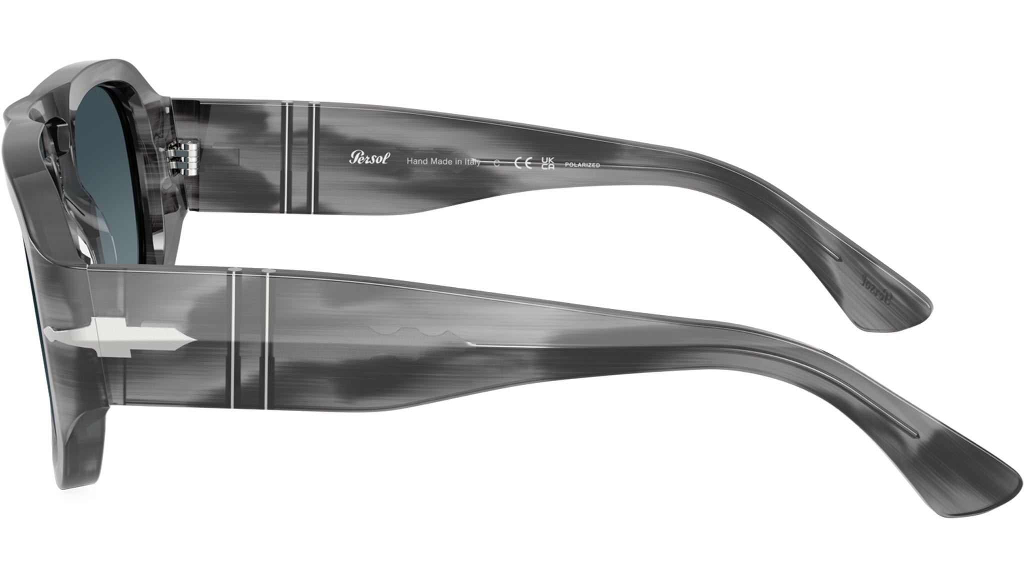 Occhiali da sole Persol unisex modello PO3373S 1192S3 con montatura navigator in acetato grigio striato e lenti in cristallo blu chiaro sfumato blu scuro base 6. Vestibilità a ponte alto. Linea: Sartoria. Codice Brand: 0PO3373S. Codice colore: 1192S3. Rivenditore autorizzato online Persol Eyewear. Ogni prodotto Persol viene consegnato con astuccio originale e accessori ed è coperto da garanzia del produttore di 12 mesi.