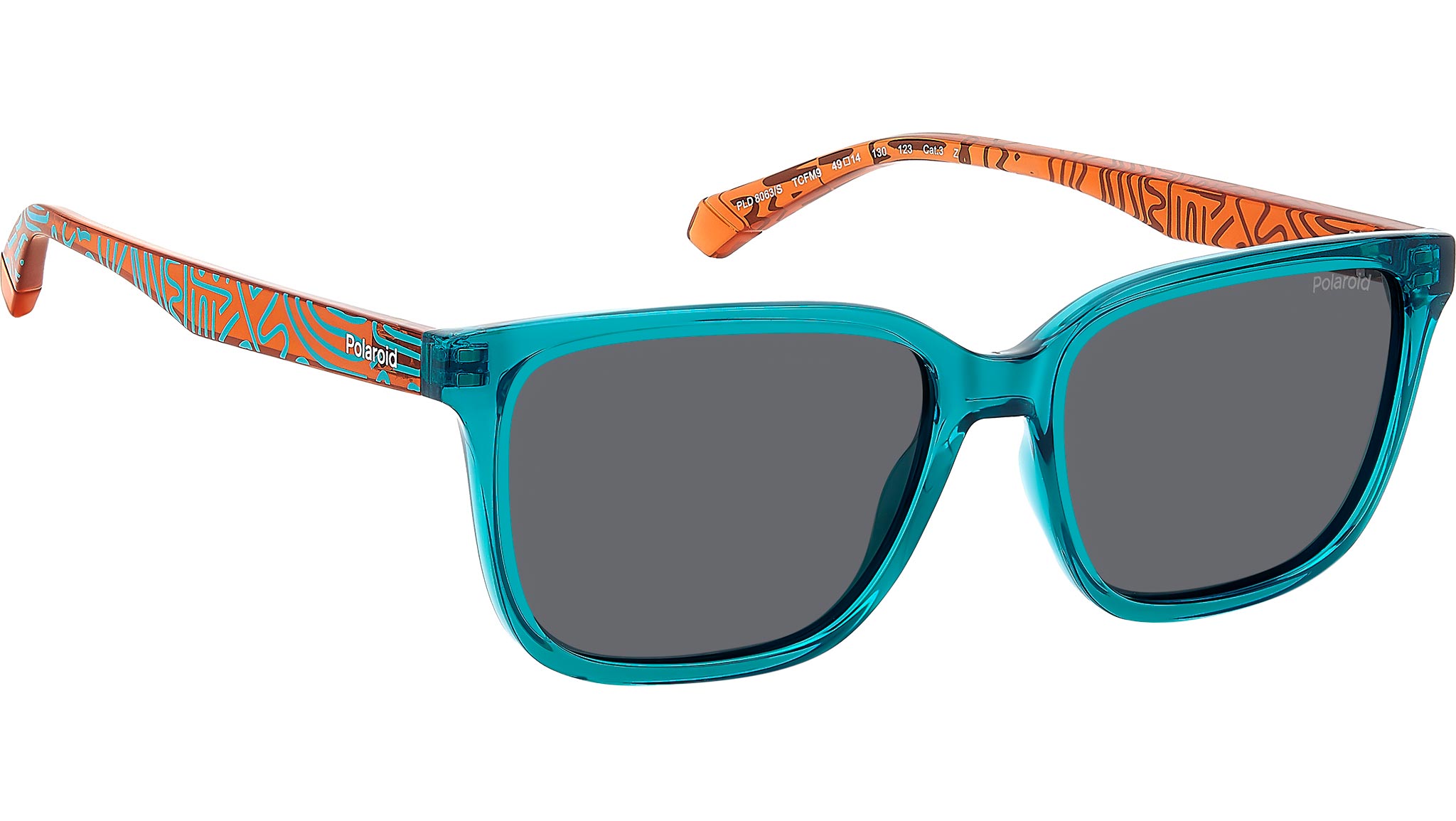 Occhiali da sole Polaroid Kids PLD 8063/S TCF M9 junior con montatura in policarbonato turchese e lenti grigio polarizzate. Non si è mai troppo piccoli per giocare con la moda: per questo Polaroid propone occhiali da sole per bambini dai 7 ai 10 anni di età. Questo modello ha una forma rettangolare e colorazioni vitaminiche. Arriva nelle varianti con aste e frontale a contrasto, oppure con un pattern grafico davvero cool. Realizzati in policarbonato non temono urti e graffi, mentre le lenti polarizzate offrono protezione dai raggi solari. Linea: Kids. Codice modello: 207390. Codice colore: TCF M9. Rivenditore autorizzato Polaroid Kids online. Gli occhiali vengono consegnati con custodia e accessori originali e sono coperti dalla garanzia ufficiale di 12 mesi del produttore.