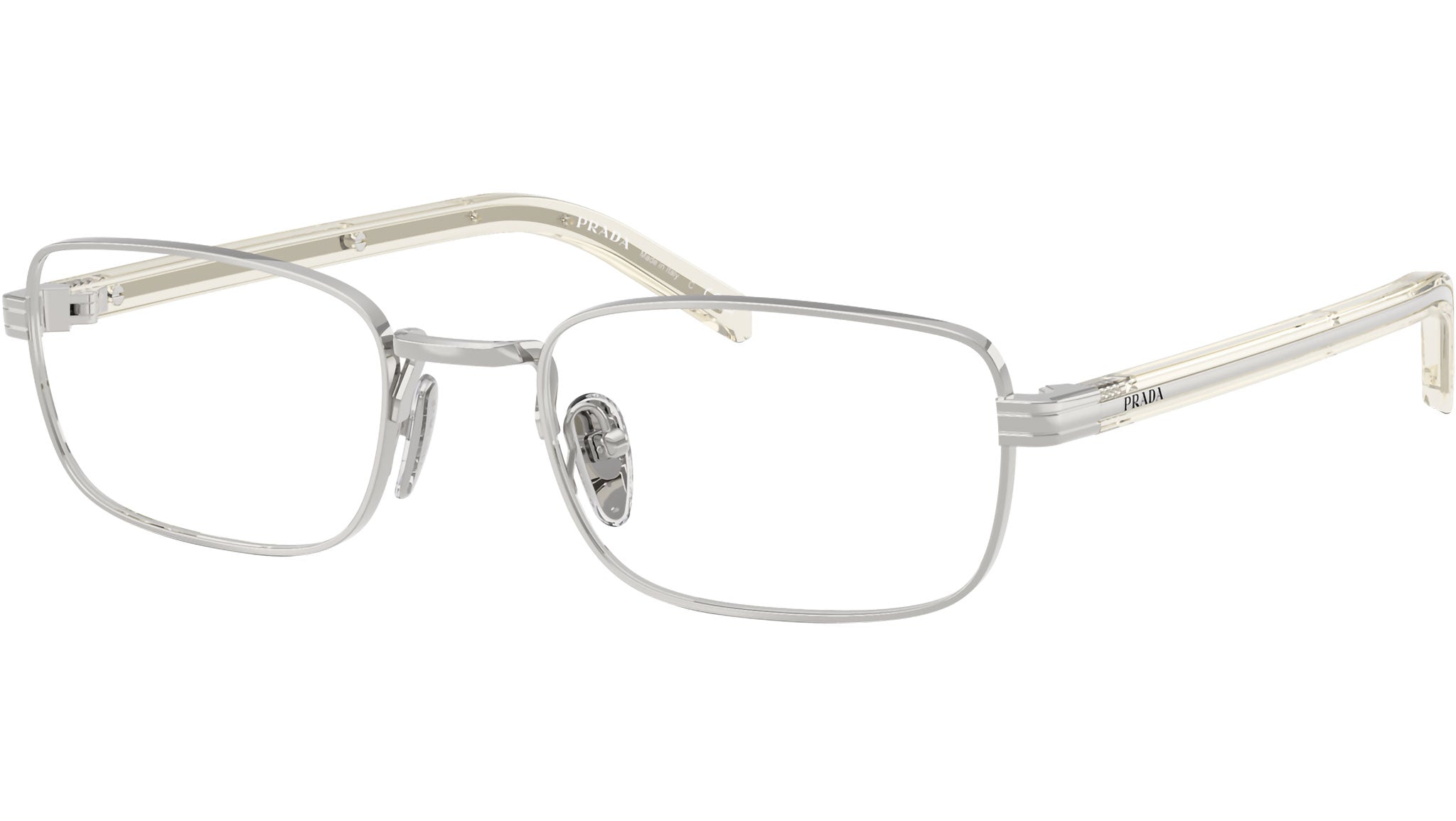 Occhiali da vista Prada PR B54V 1BC1O1 donna con montatura rettangolare in acciaio argento e lenti demo. Naselli regolabili. Linea: Signature. Codice modello: PRB54V. Codice colore: 1BC1O1. Made in Italy. Rivenditore autorizzato Prada online. Gli occhiali vengono consegnati con custodia e accessori originali e sono coperti dalla garanzia ufficiale di 12 mesi del produttore.