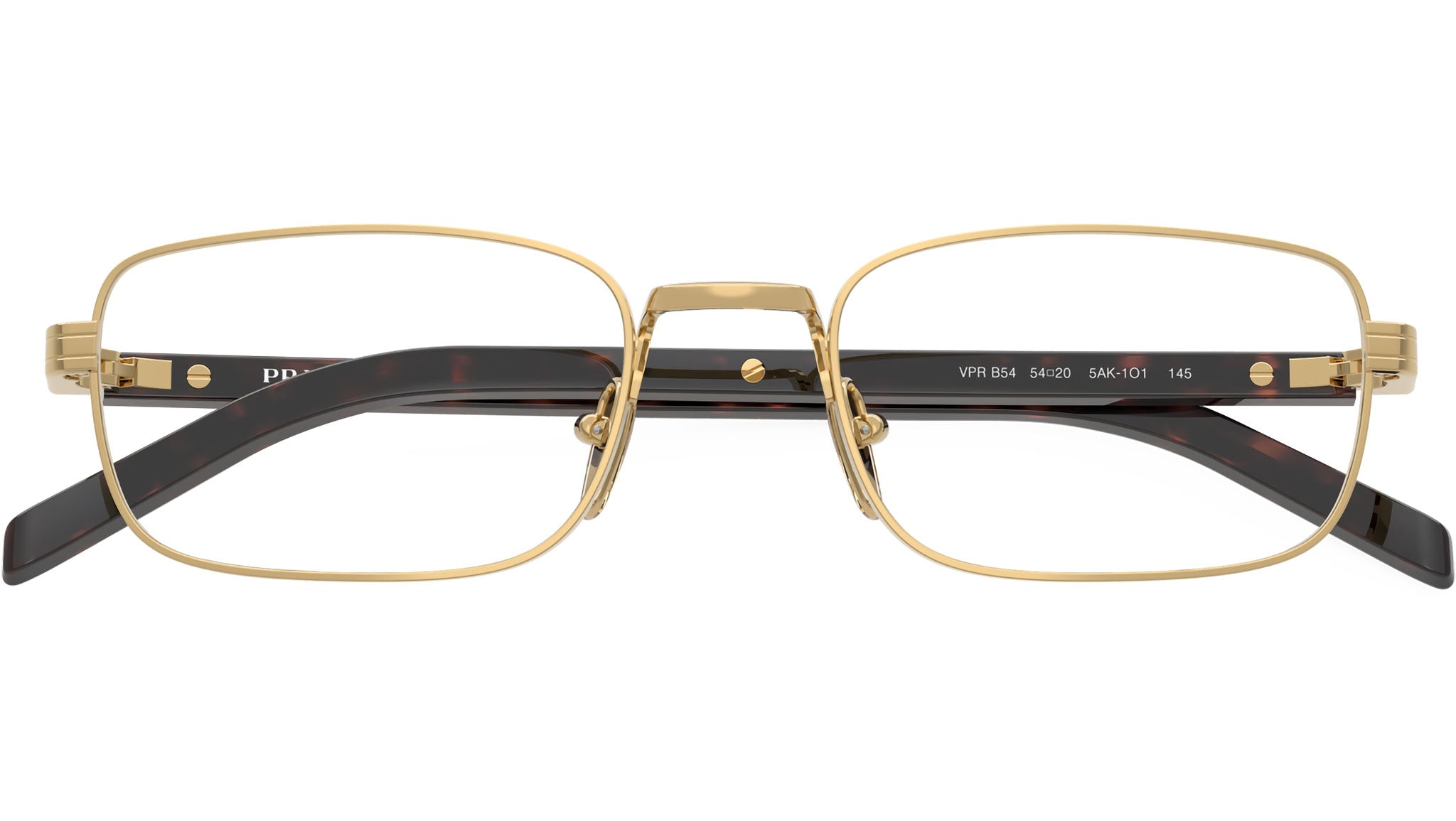 Occhiali da vista Prada PR B54V 5AK1O1 donna con montatura rettangolare in acciaio oro e lenti demo. Naselli regolabili. Linea: Signature. Codice modello: PRB54V. Codice colore: 5AK1O1. Made in Italy. Rivenditore autorizzato Prada online. Gli occhiali vengono consegnati con custodia e accessori originali e sono coperti dalla garanzia ufficiale di 12 mesi del produttore.