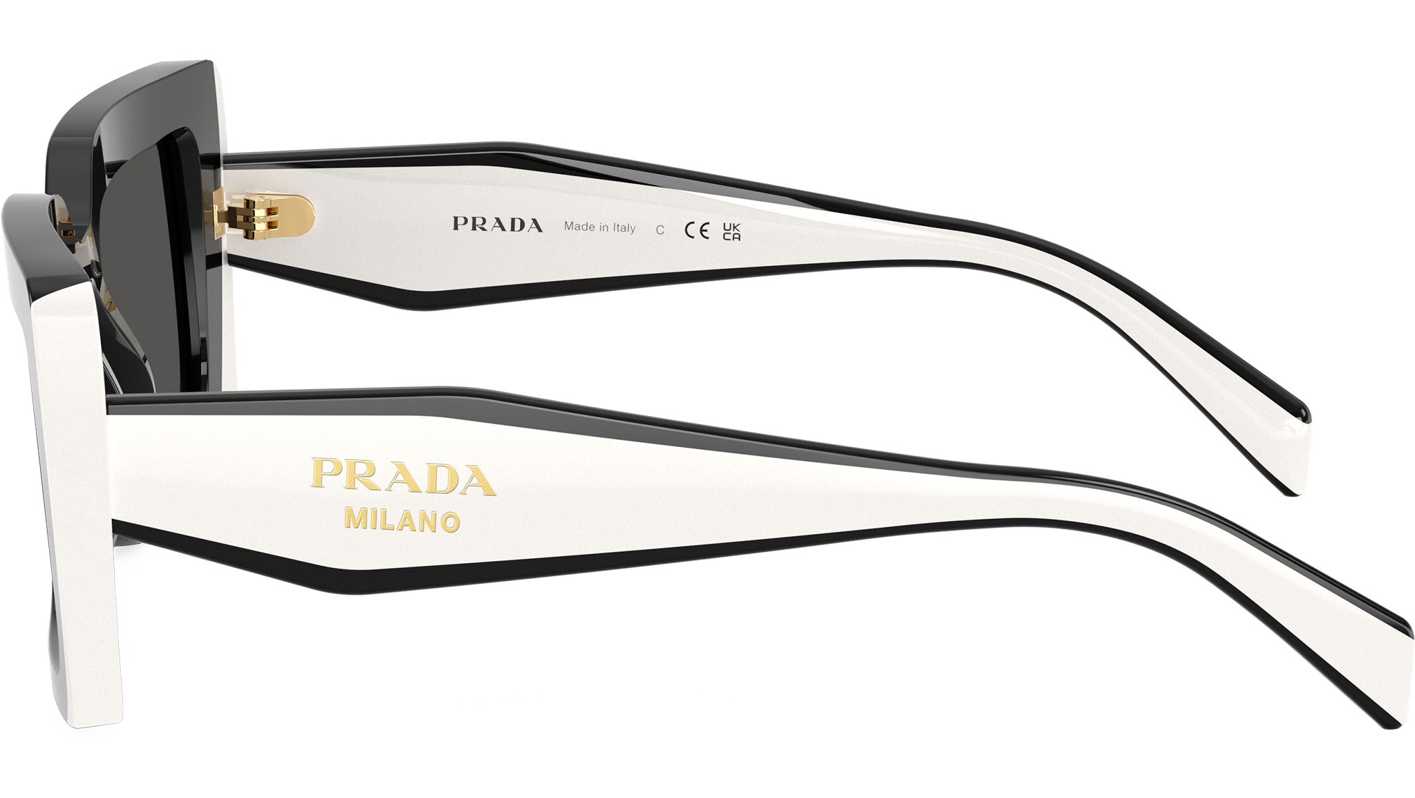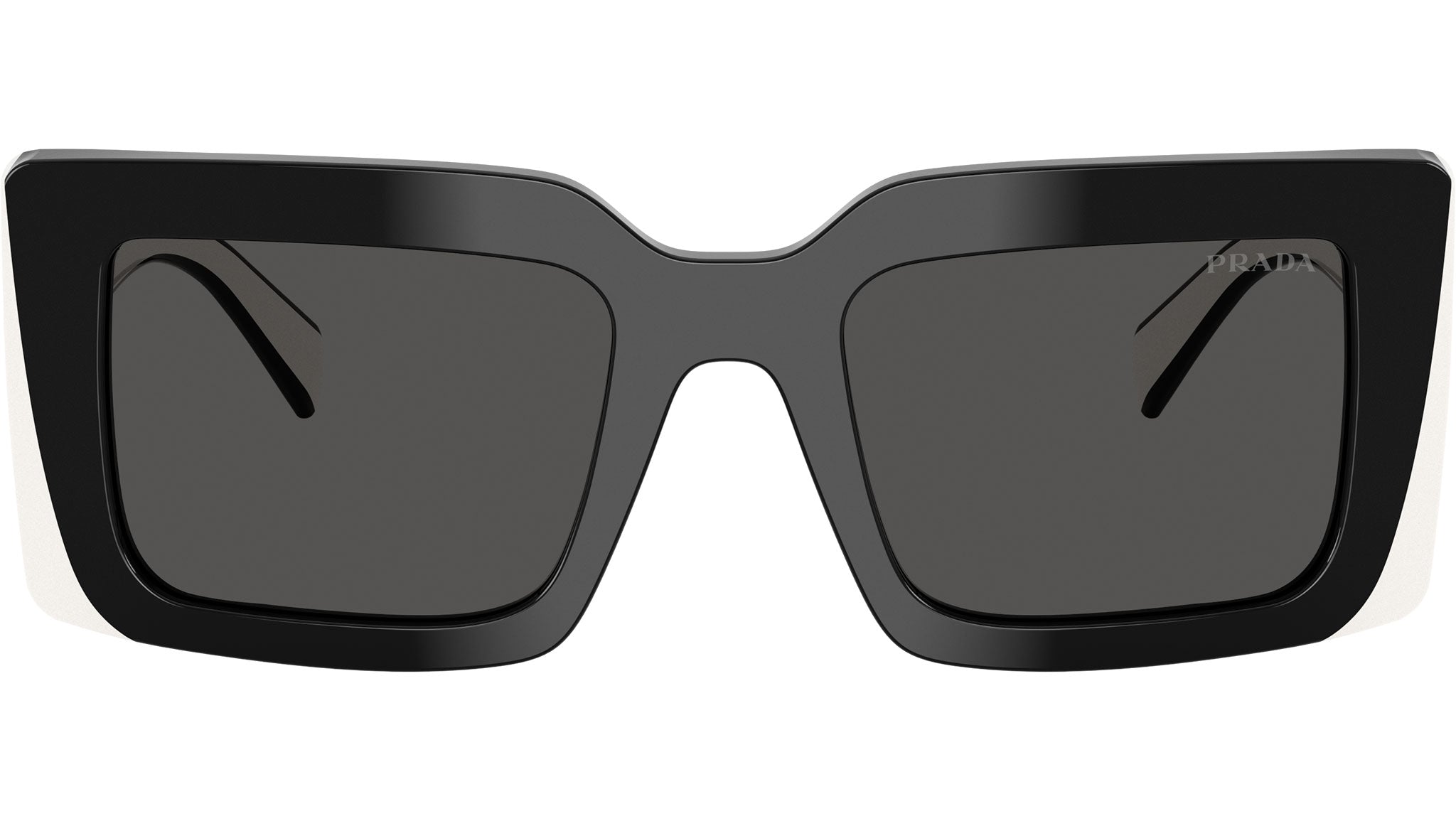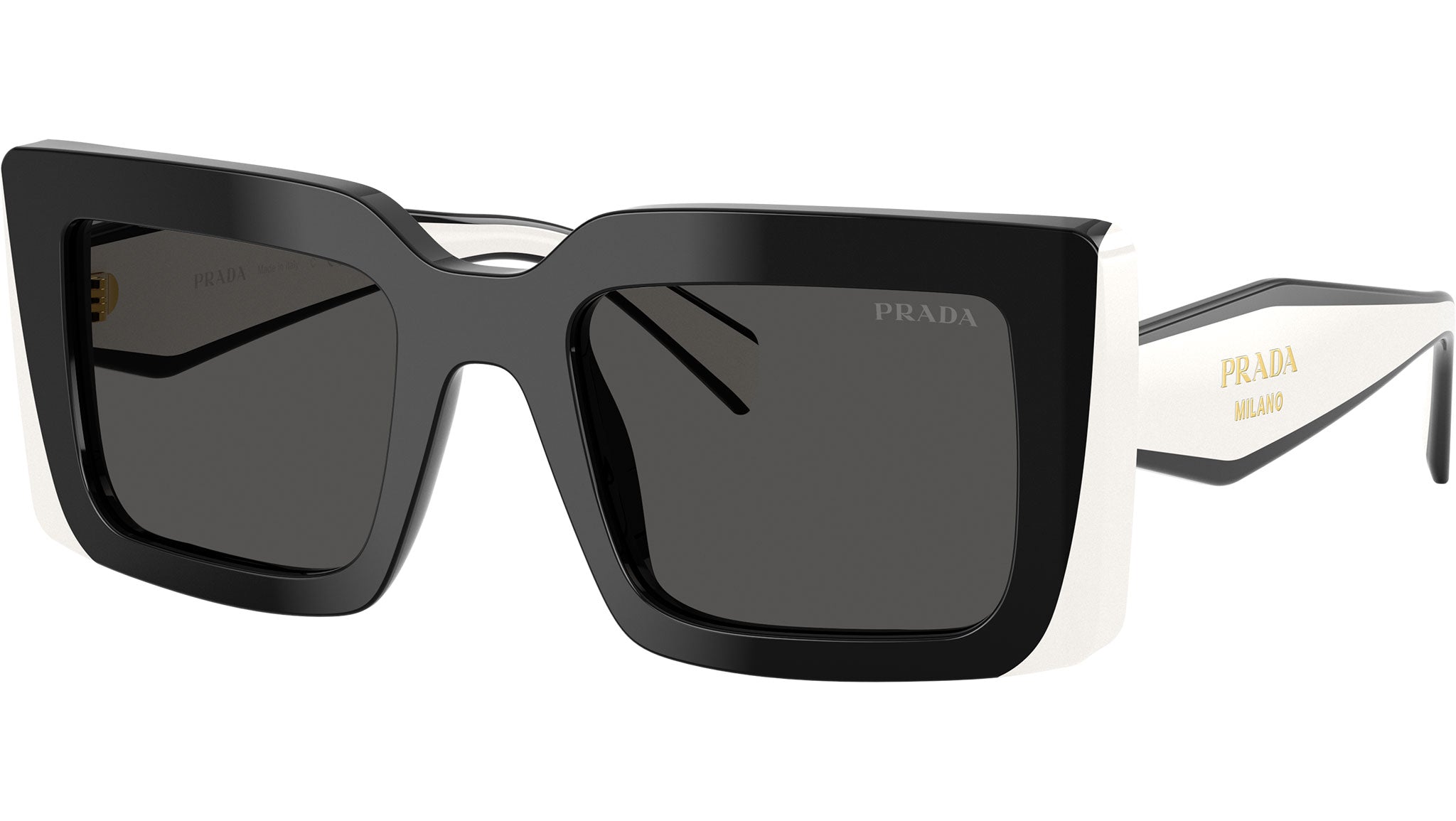 Occhiali da sole Prada PR D01S 20G08Z donna con montatura rettangolare in acetato nero e lenti in bio poliammide color grigio scuro. Vestibilità a ponte alto. Linea: Design. Codice modello: PRD01S. Codice colore: 20G08Z. Made in Italy. Rivenditore autorizzato Prada online. Gli occhiali vengono consegnati con custodia e accessori originali e sono coperti dalla garanzia ufficiale di 12 mesi del produttore.