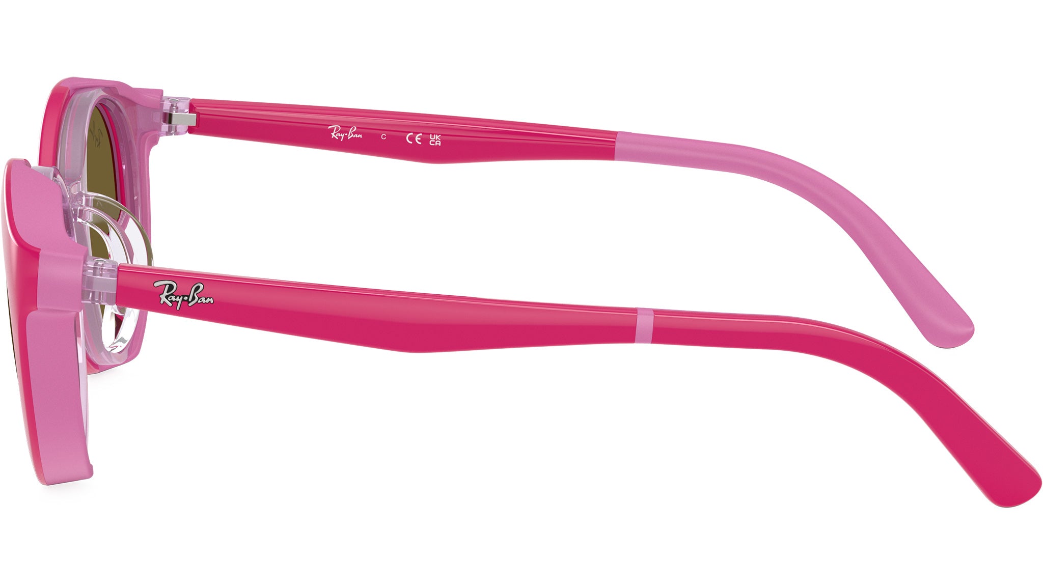 Clip per occhiali Ray-Ban Junior RY1625DC 391273 con montatura pantos in iniettato rosa su rosso e lenti in policarbonato color marrone scuro. Vestibilità a ponte basso. Linea: Kids Innovation. Codice modello: 0RY1625DC. Codice colore: 391273. Rivenditore autorizzato Ray-Ban online. Gli occhiali vengono consegnati con custodia e accessori originali e sono coperti dalla garanzia ufficiale di 12 mesi del produttore.