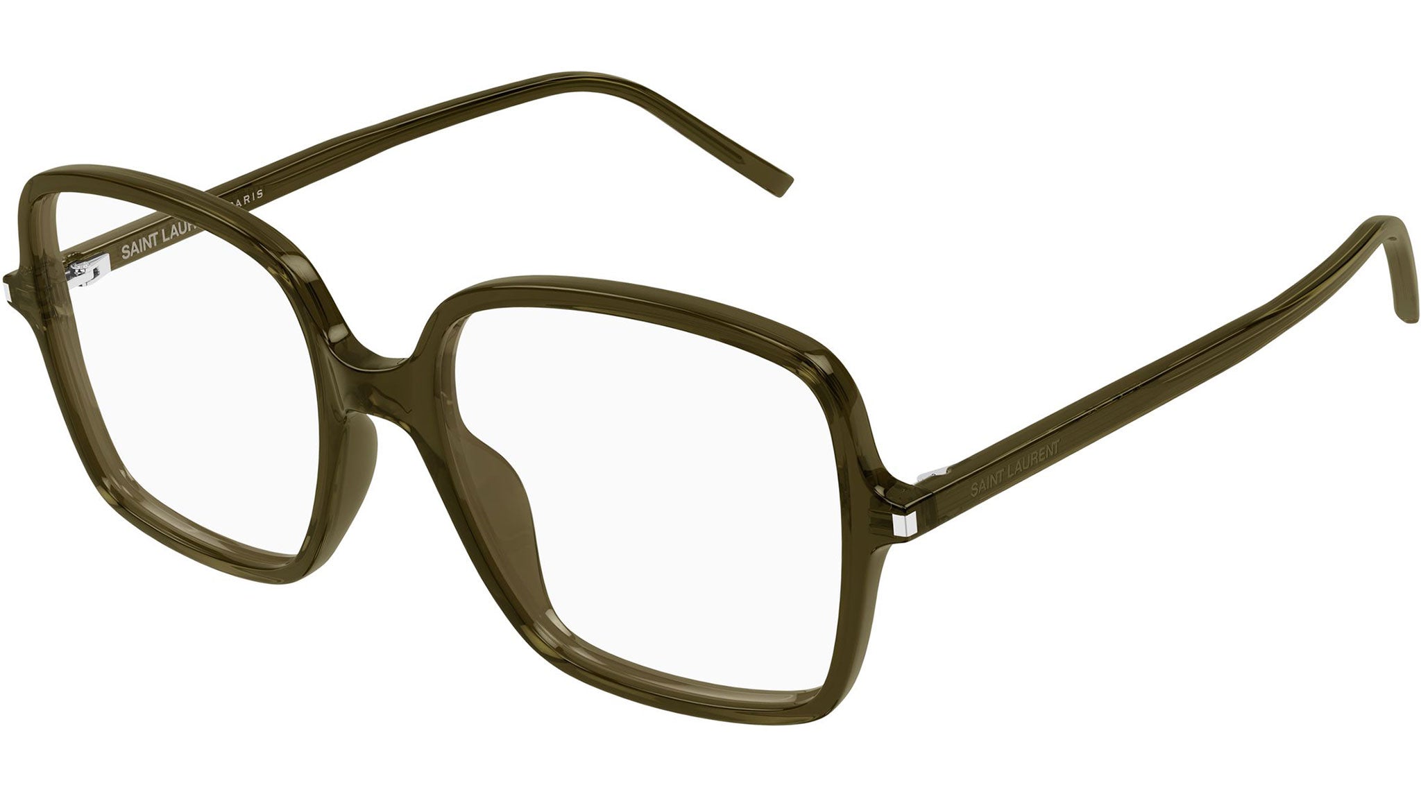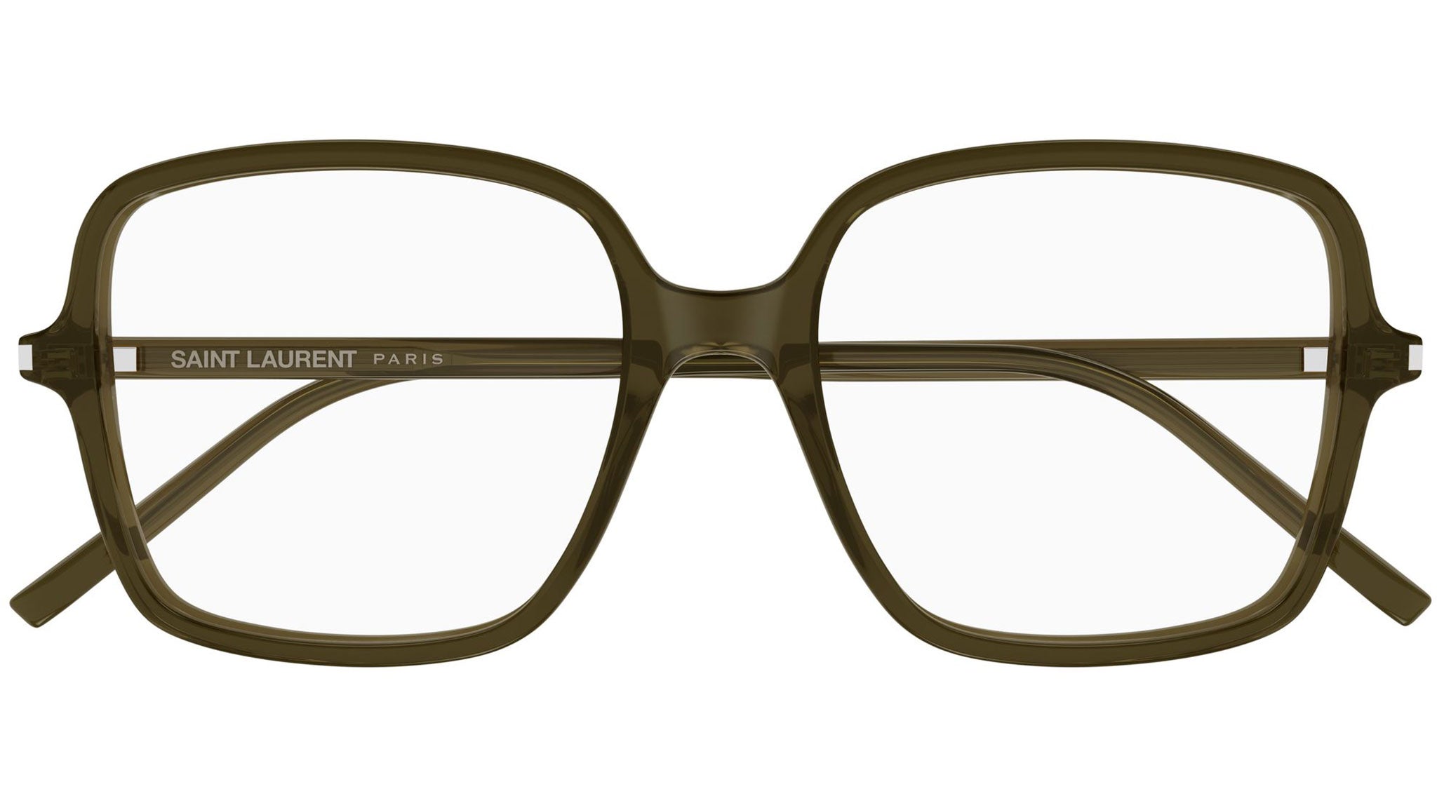Occhiali da vista Saint Laurent SL 892 007 donna con montatura rettangolare in acetato riciclato kaki trasparente lucido e lenti demo. Linea: Corner Angle. Codice modello: SL 892. Codice colore: 007. Made in Italy. Rivenditore autorizzato Saint Laurent online. Gli occhiali vengono consegnati con custodia e accessori originali e sono coperti dalla garanzia ufficiale di 12 mesi del produttore.