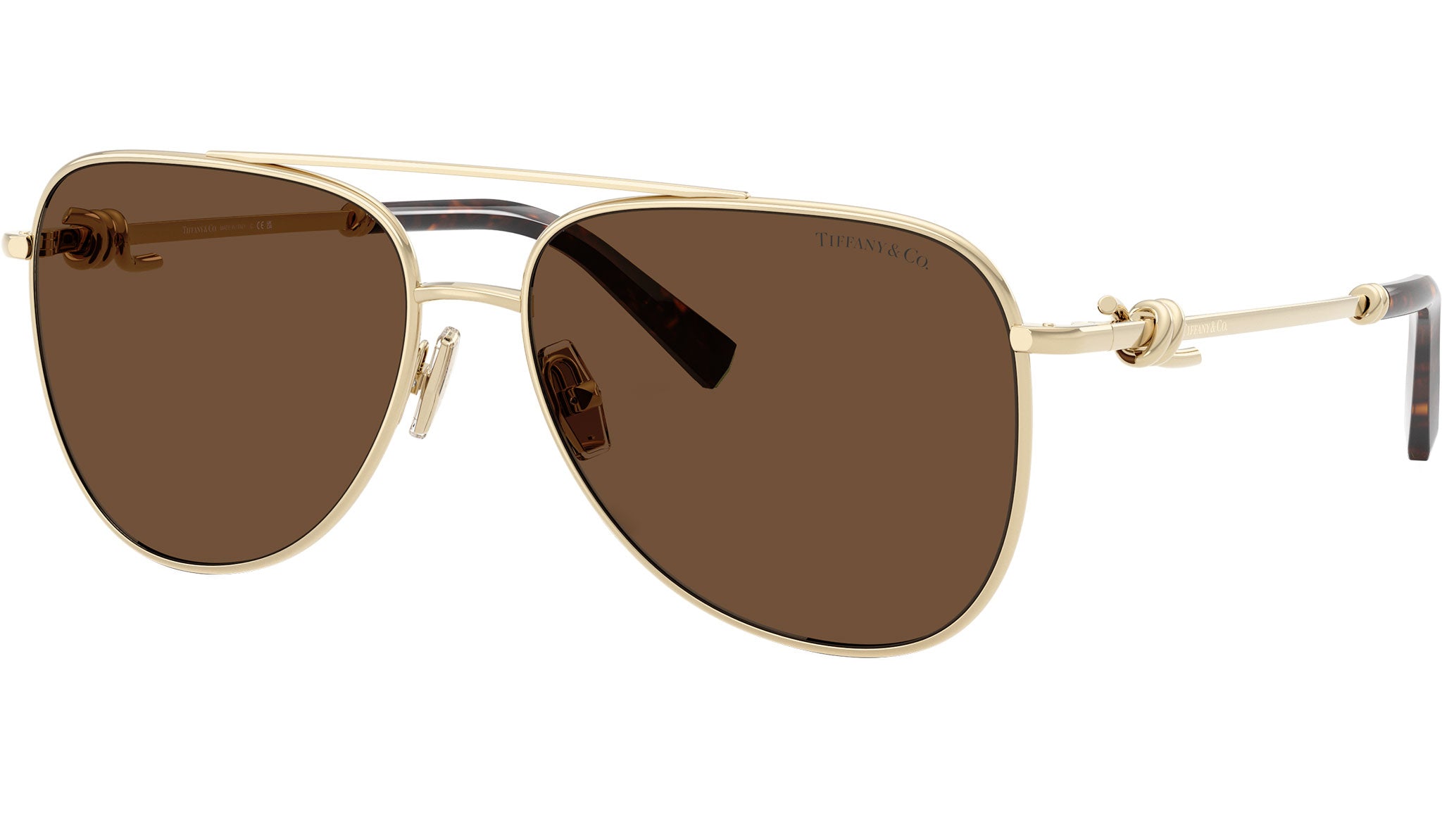 Occhiali da sole Tiffany donna modello TF3116 61933G con montatura navigator in metallo oro chiaro e lenti in bio poliammide marrone chiaro base 4. Naselli regolabili. Linea: Icons. Codice Brand: 0TF3116. Codice colore: 61933G. Rivenditore autorizzato online Tiffany Eyewear. Ogni prodotto Tiffany viene consegnato con astuccio originale e accessori ed è coperto da garanzia del produttore di 12 mesi.