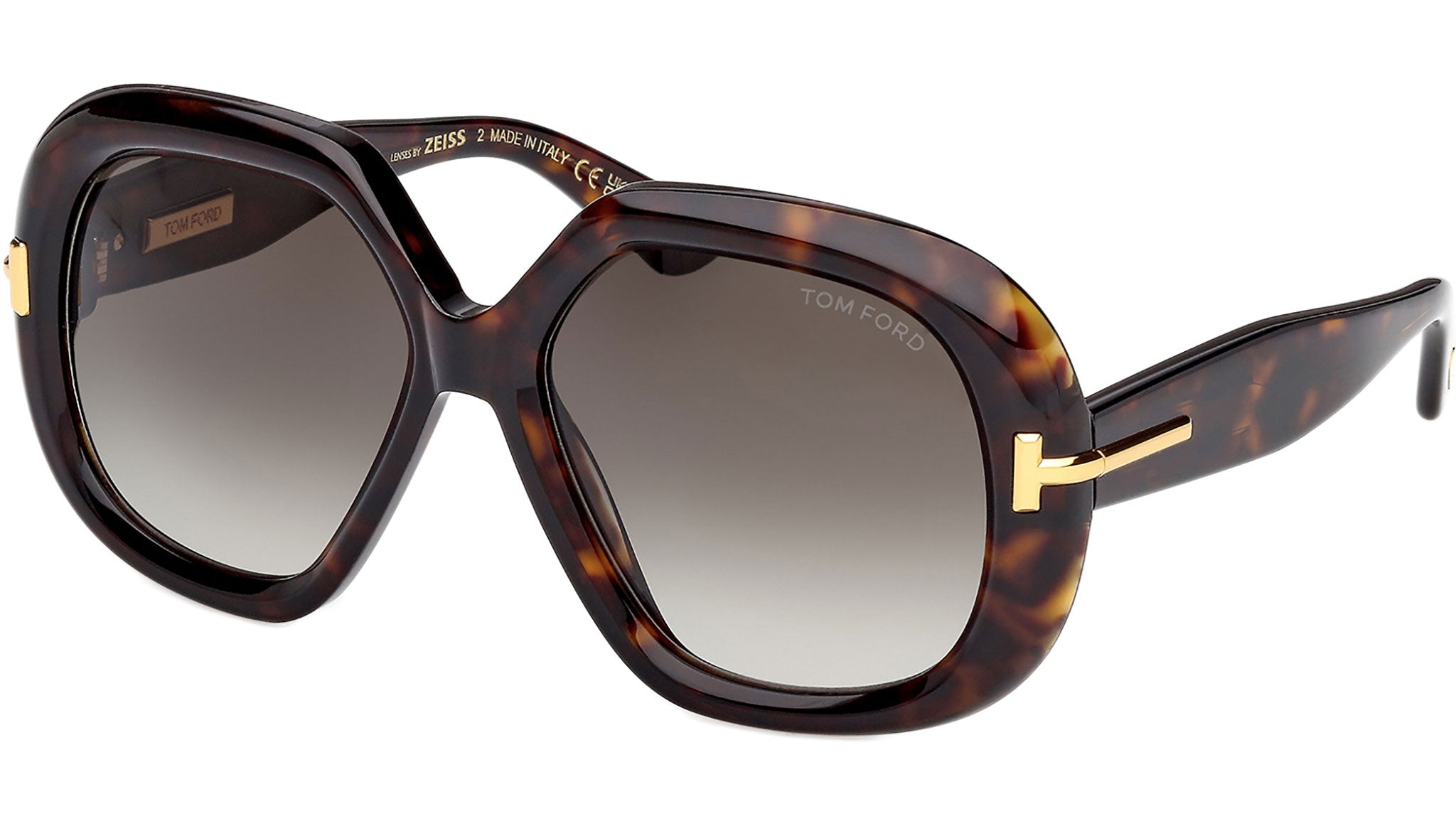Occhiali da sole Tom Ford donna modello Icon FT1278 con montatura geometrica full-rim in acetato avana scuro e lenti color grigio fumo sfumato. Codice Brand: 1278. Codice colore: 52B. Rivenditore autorizzato Tom Ford online. Gli occhiali vengono consegnati con custodia e accessori originali e sono coperti da garanzia standard di 12 mesi del produttore.