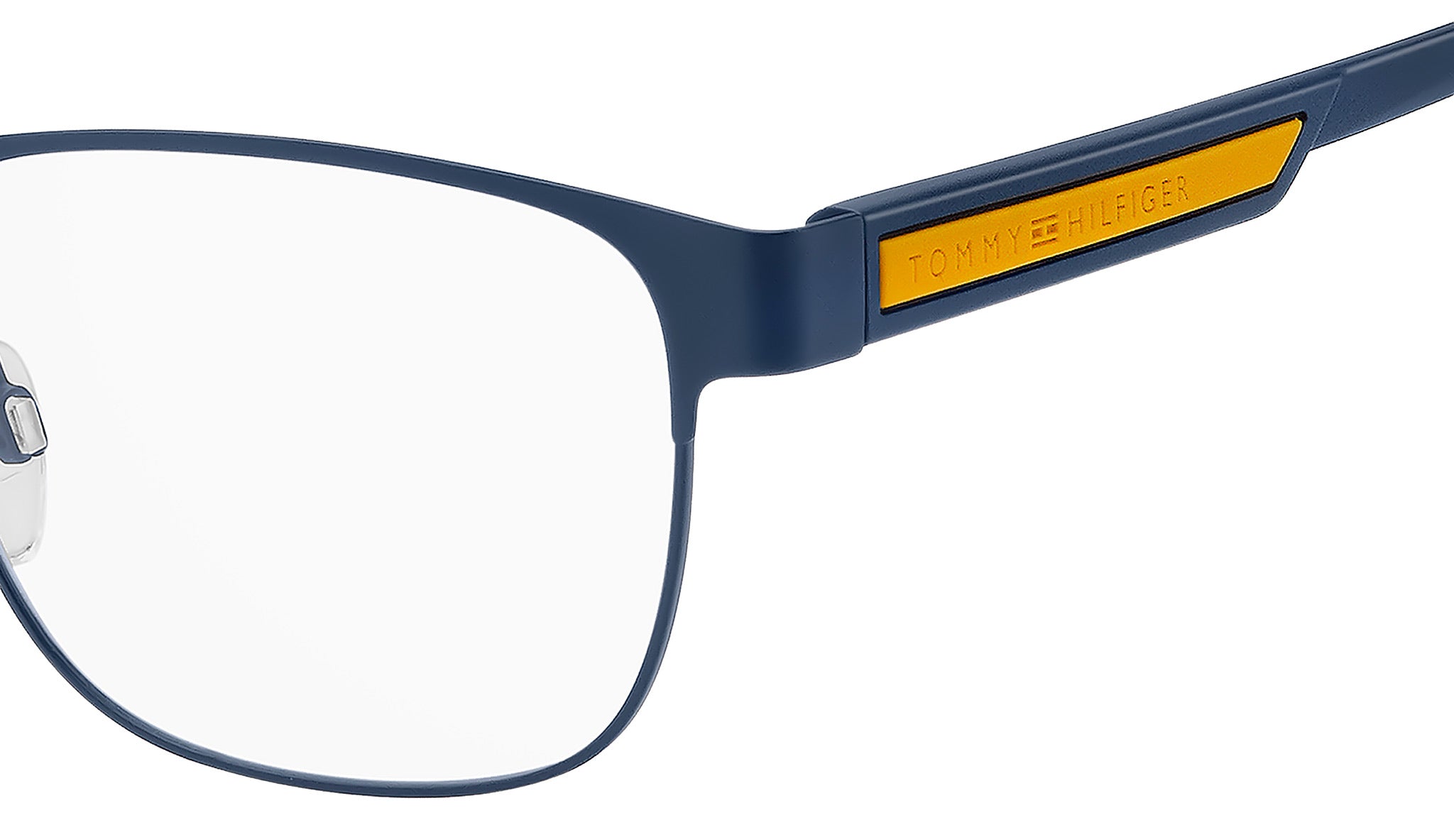 Occhiali da vista Tommy Hilfiger TH 2090 FLL uomo con montatura rettangolare in metallo blu opaco e lenti demo. Tommy Hilfiger propone occhiali da vista dall’attitude sportiva. L’elemento caratterizzante è sulle aste: l’inserto con colorazione a contrasto omaggia le Olimpiadi 2024. La calzata è perfetta grazie alle cerniere flessibili e ai naselli regolabili.