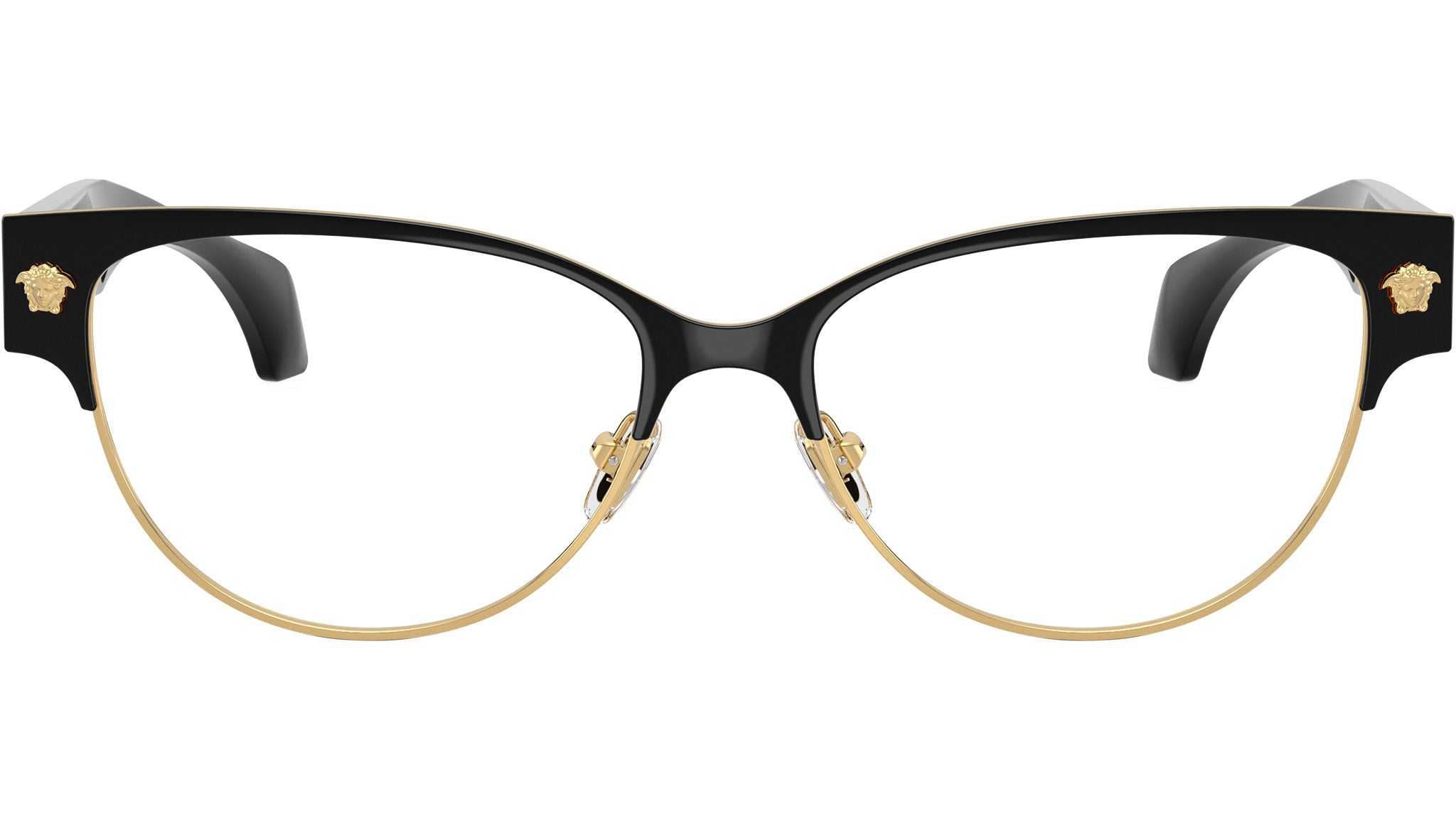 Montatura per occhiali da vista Versace donna modello VE1318 1433 con montatura cat eye in metallo nero / oro e lenti demo base 4. Naselli regolabili. Linea: Daily Heritage. Codice Brand: 0VE1318. Codice colore: 1433. Rivenditore autorizzato online Versace Eyewear. Ogni prodotto Versace viene consegnato con astuccio originale e accessori ed è coperto da garanzia del produttore di 12 mesi.