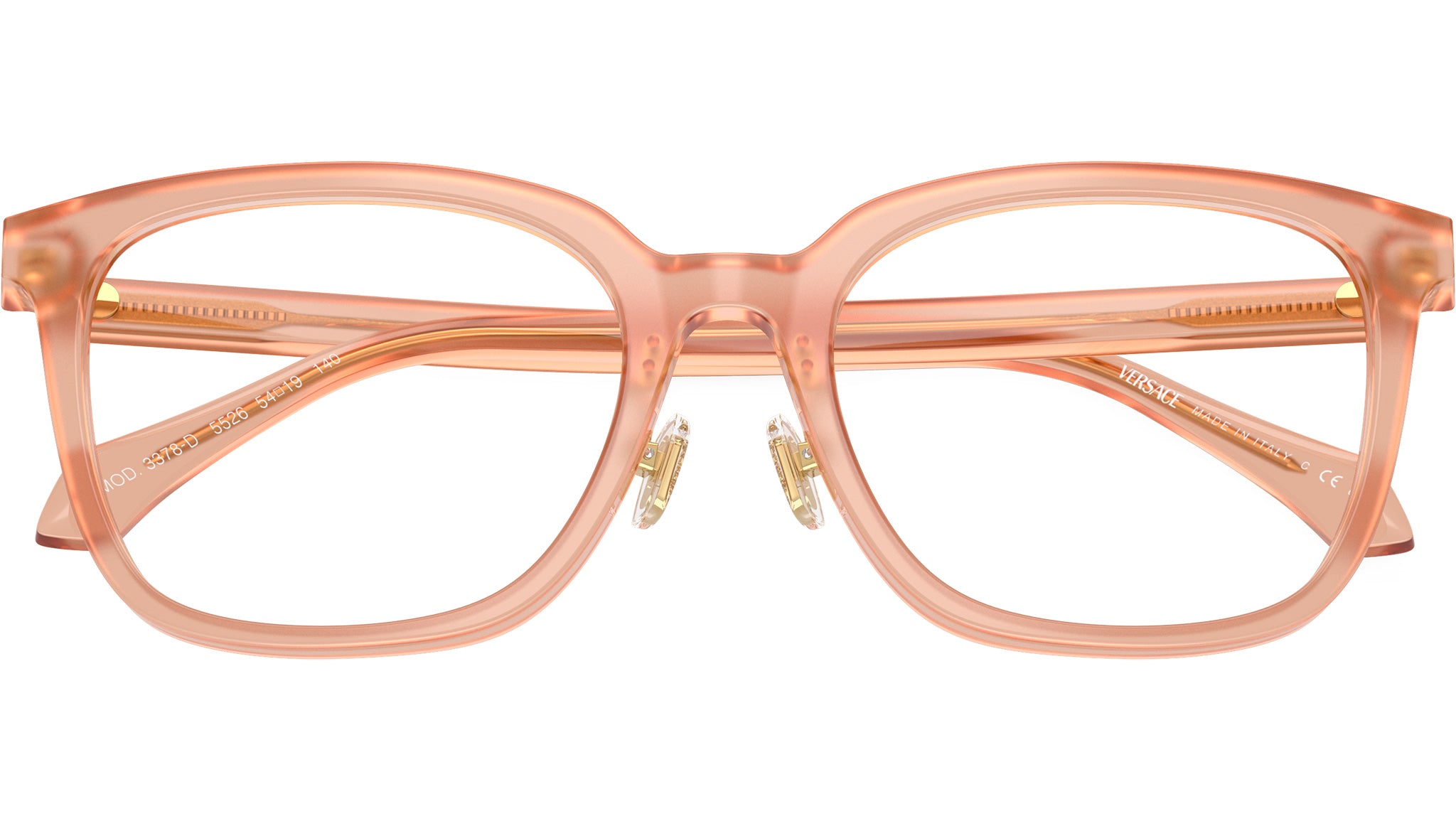 Montatura per occhiali da vista Versace donna modello VE3378D 5526 con montatura squadrata in acetato pesca latteo e lenti demo base 4. Vestibilità a ponte basso. Linea: Daily Heritage. Codice Brand: 0VE3378D. Codice colore: 5526. Rivenditore autorizzato online Versace Eyewear. Ogni prodotto Versace viene consegnato con astuccio originale e accessori ed è coperto da garanzia del produttore di 12 mesi.