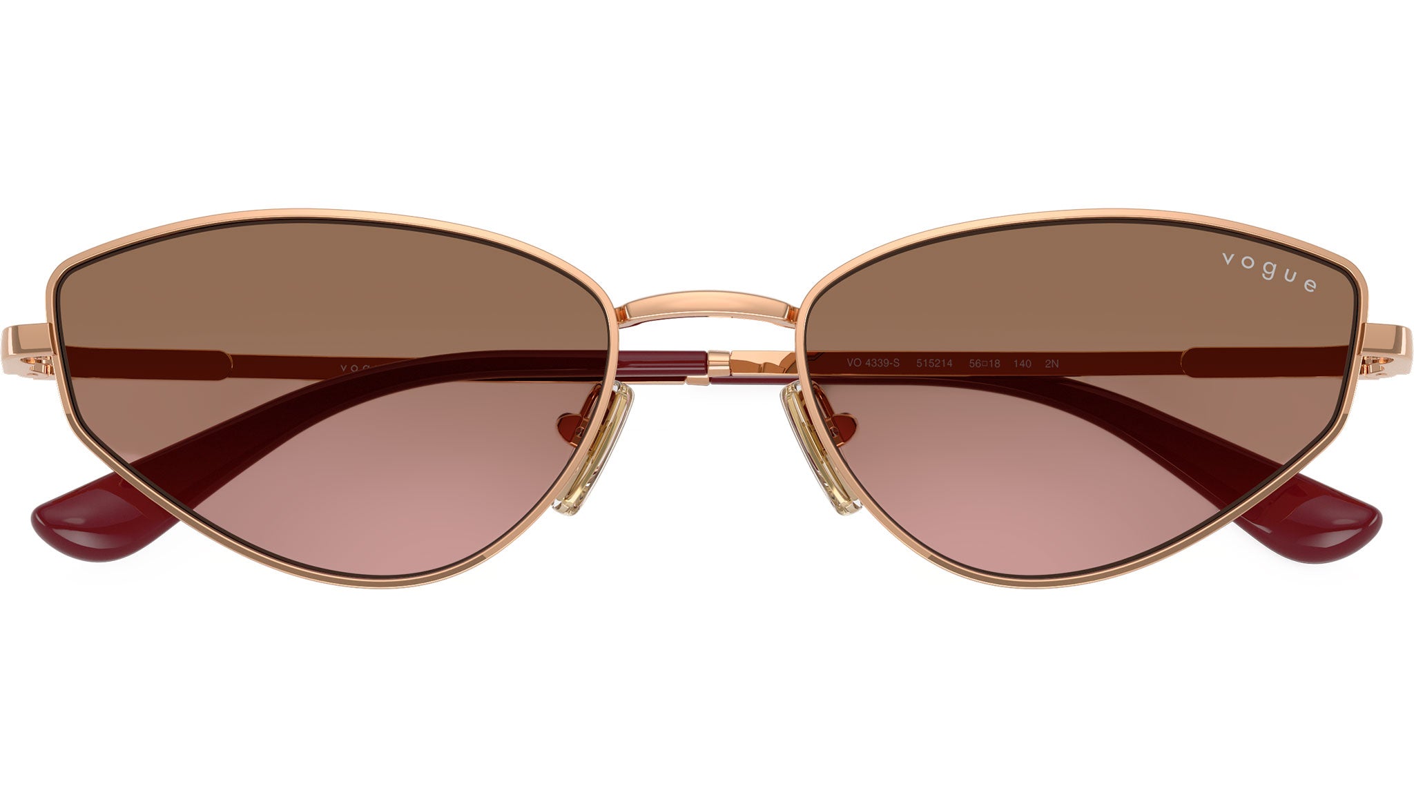 Occhiali da sole Vogue donna modello VO4339S 515214 con montatura cat eye in metallo oro rosa e lenti base 4 in policarbonato rosa sfumato marrone. Naselli regolabili. Linea: In Vogue. Codice Brand: 0VO4339S. Codice colore: 515214. Rivenditore autorizzato online Vogue Eyewear. Ogni prodotto Vogue viene consegnato con astuccio originale e accessori ed è coperto da garanzia del produttore di 12 mesi.