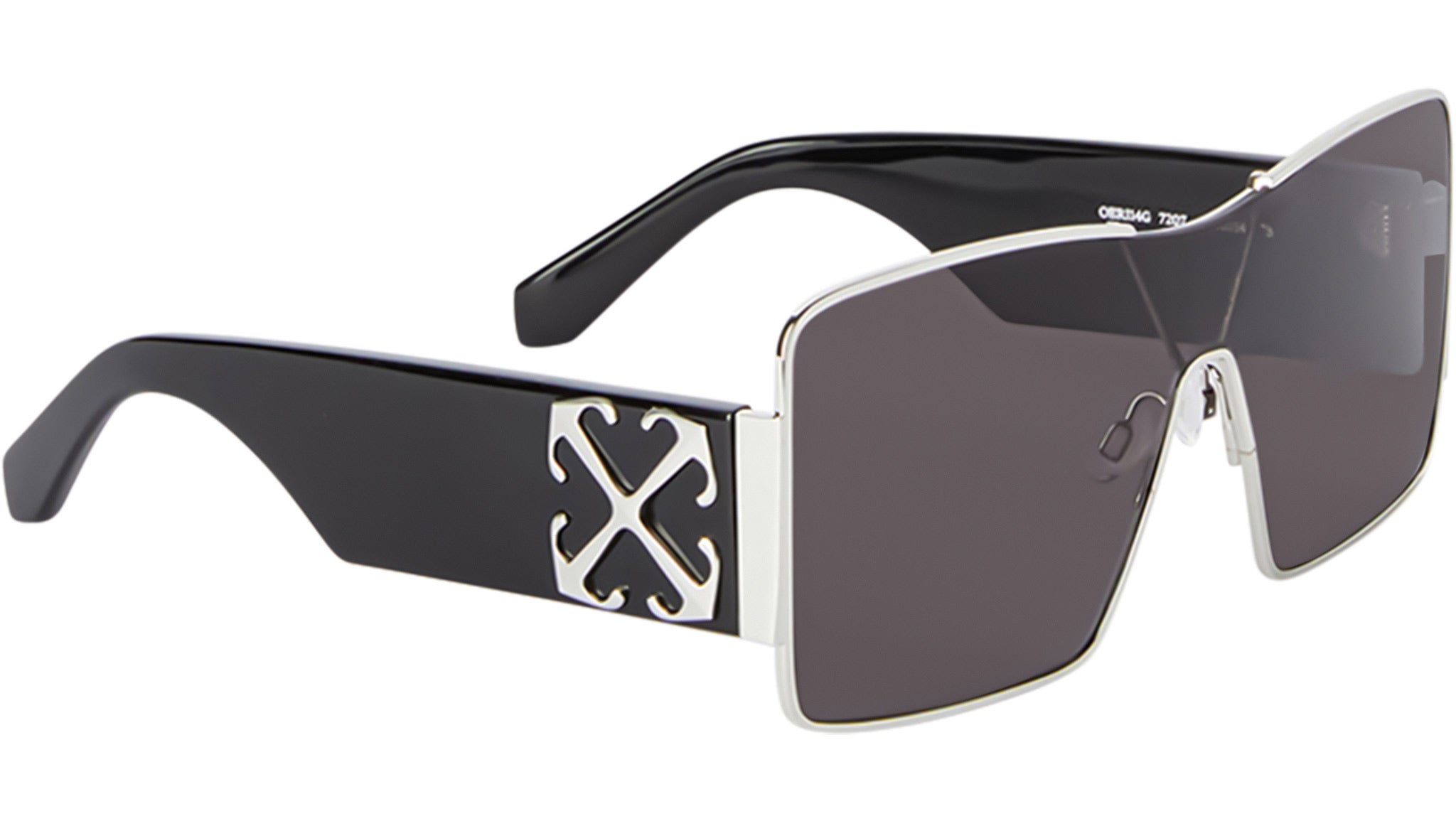 Il modello Aspen di Off-White incarna un design audace e all’avanguardia, ridefinendo l’eyewear contemporaneo attraverso una fusione innovativa di materiali. La solida base in acetato lucido si integra perfettamente con raffinati dettagli in metallo, creando un contrasto sofisticato che esalta l’estetica architettonica della montatura. La silhouette shield con lente unica assicura copertura totale e un look di forte impatto, mentre il profilo metallico lungo il frontale aggiunge un ulteriore tocco di eleganza. Le aste oversize sono impreziosite dall’iconico logo a freccia Off-White™, incastonato su entrambi i lati nella sua forma più raffinata. Disponibile in quattro varianti dallo stile deciso su base nera—total black con dettagli oro o argento, e versioni con lenti specchiate in oro o argento—il modello esprime sicurezza e un’eleganza dal forte richiamo fashion.