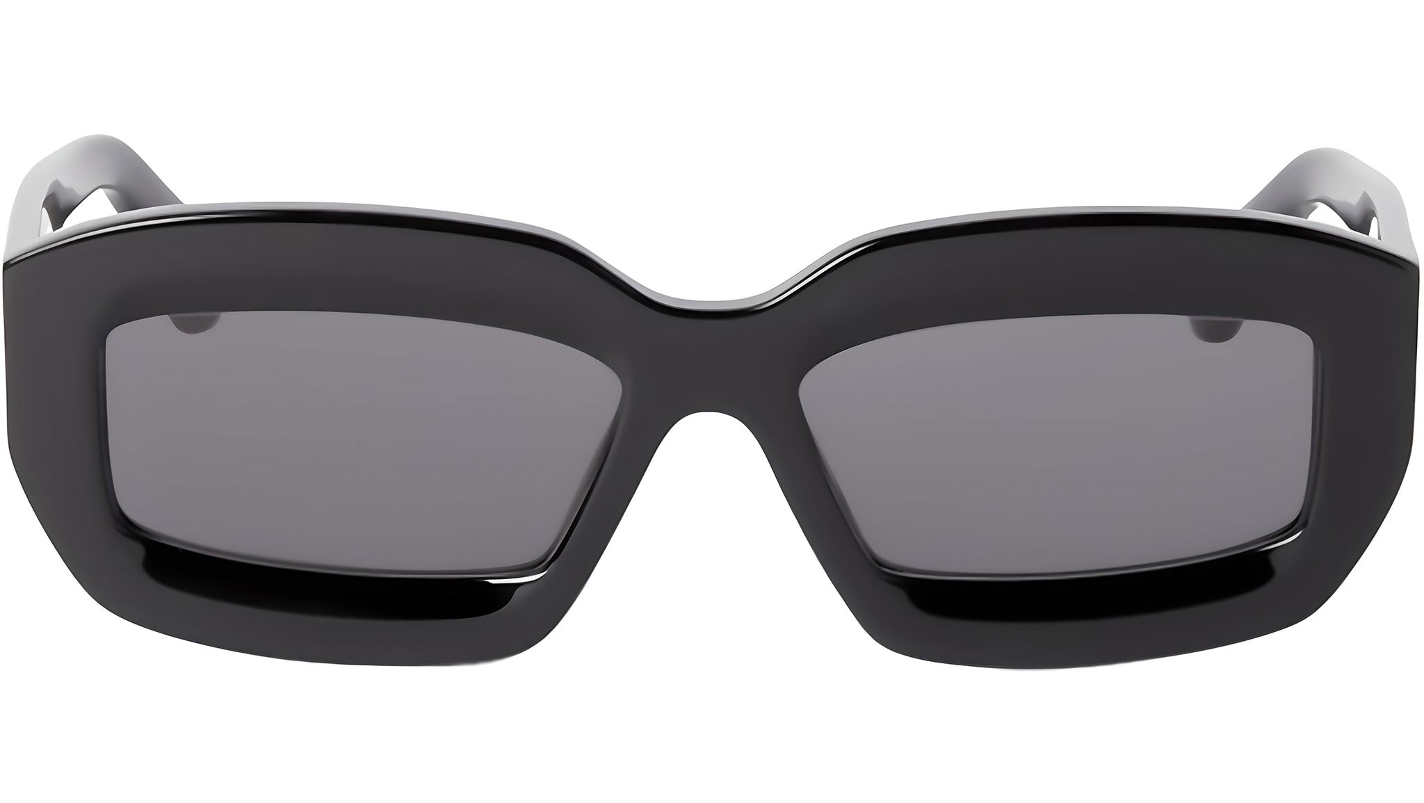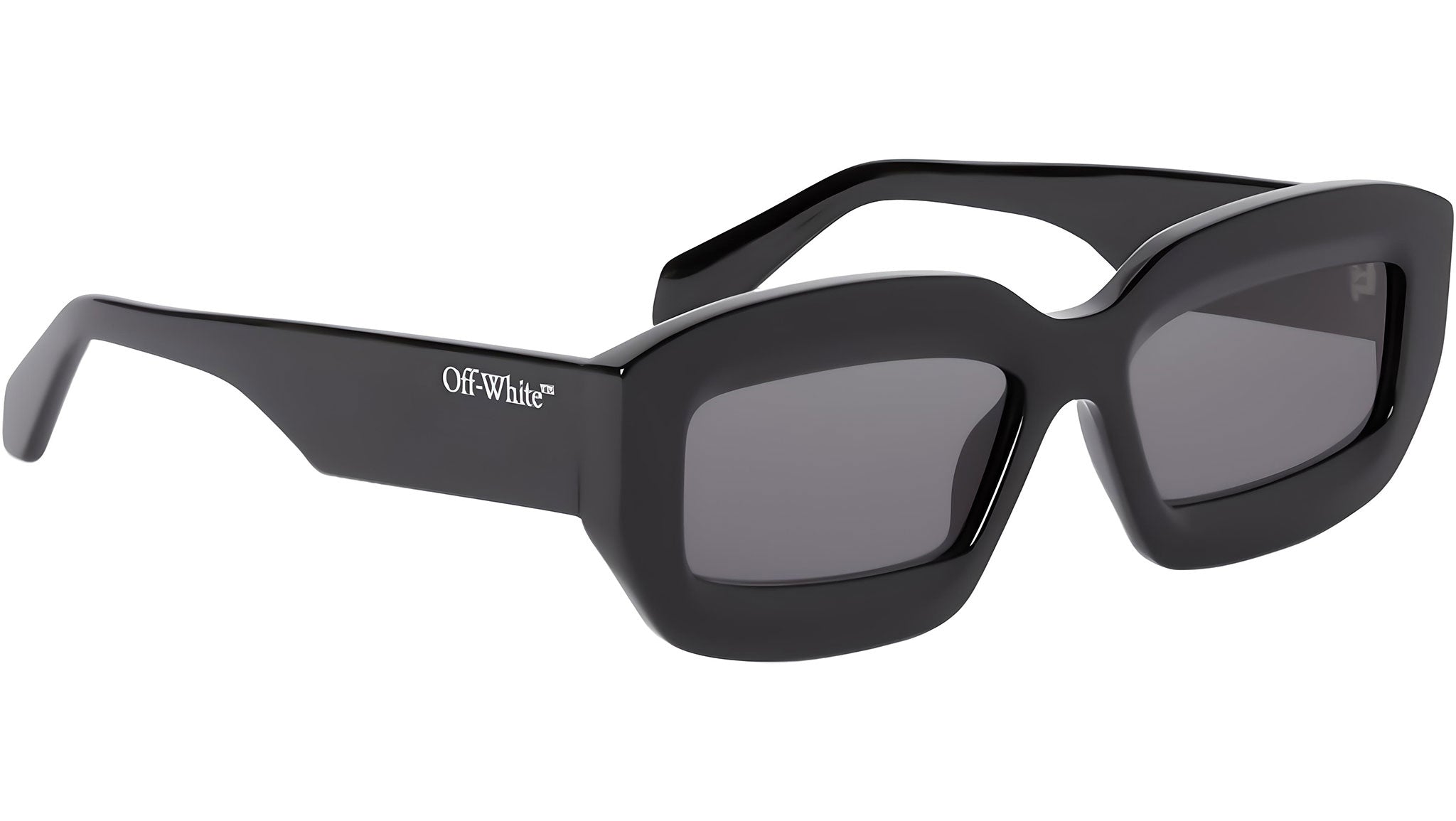 Occhiali da sole Off-White modello Charlotte codice colore 1007 con frontale in acetato nero tinta unita e lenti cat. 3 in polimero CR-39 grigio scuro. Rivenditore autorizzato Off-White Eyewear online. Gli occhiali vengono consegnati con custodia e accessori originali e sono coperti dalla garanzia ufficiale di 12 mesi del produttore.
