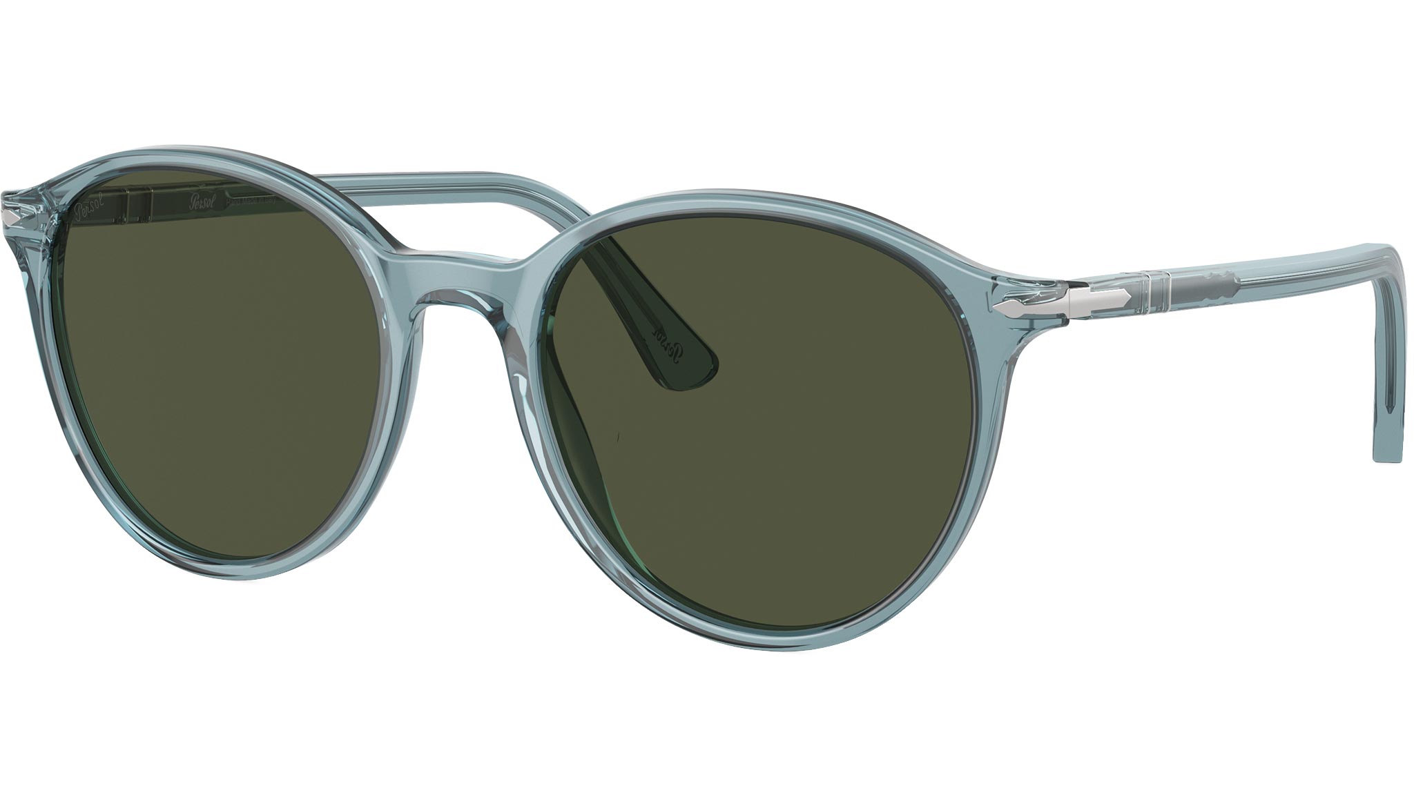 Occhiali da sole Persol PO3350S codice colore 120431 blu trasparente in acetato con lenti color verde. Persol fonde in modo armonioso estetica e tecnologia. Dedica un'attenzione meticolosa a ogni dettaglio, nel coniugare stile distintivo e soluzioni pratiche. Guidata da una passione incrollabile per il perfezionamento delle abilità artigianali e da una ricerca incessante in innovazione, Persol incarna la vera qualità italiana. Il suo nome evocativo significa 'per il sole', testmonianza viva del ricco patrimonio di maestria superiore ed eccellenza, all'apice della manifattura italiana artigianale. Rinomata per il suo design senza tempo e per la sua arte nel creare occhiali unici, il marchio è diventato una delle scelte più amate nell'ambito del cinema.