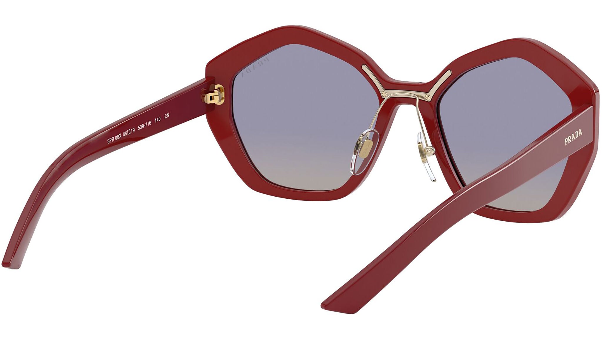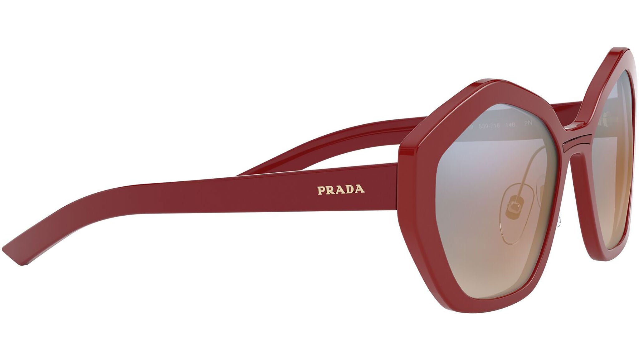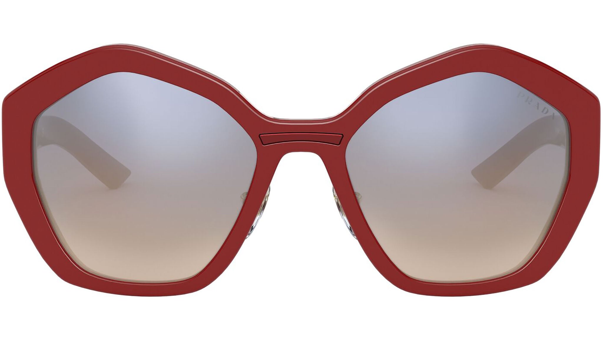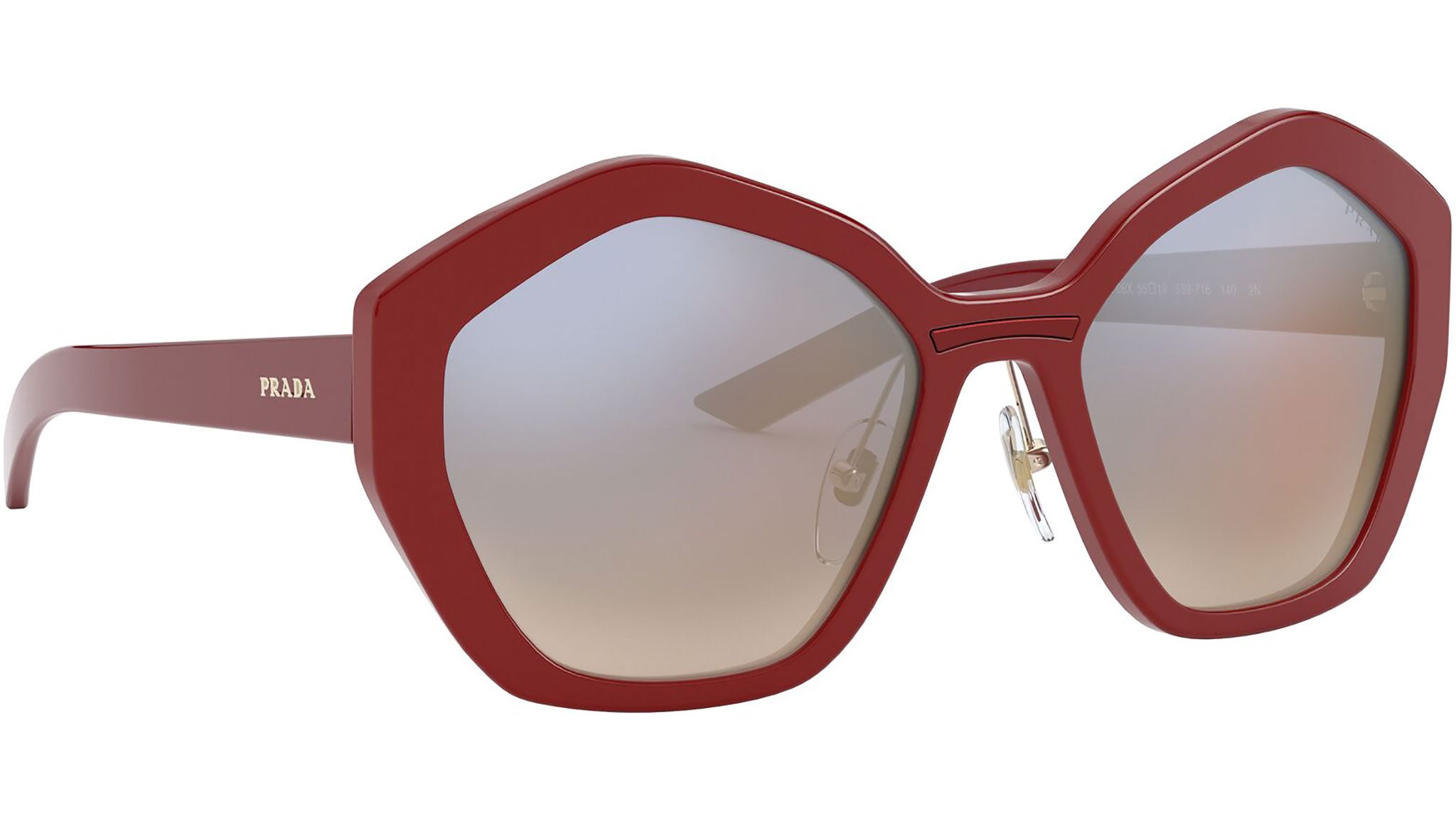 Prada sunglasses model PR 08XS, red frame variant, color code 539716 with gradient blue back mirror orange lens. Prada represents the best of Italian culture and tradition. It is one of the most innovative, prestigious and widely recognized brands in the fashion and luxury goods industries, with a keen attention to details and new trends.