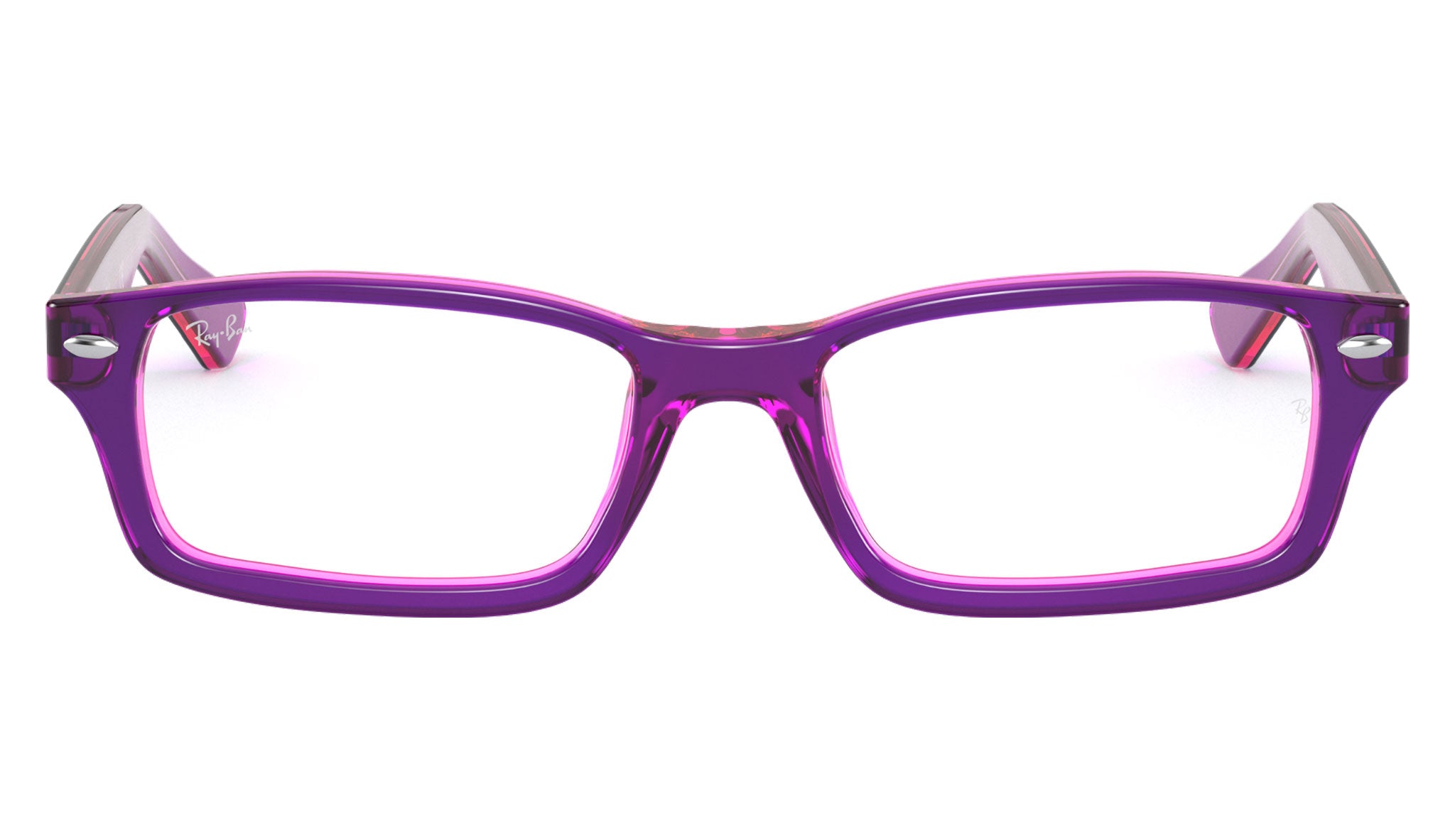 Occhiali da vista Ray-Ban Kids RY1530 color violet su fuxia fluo in acetato codice colore 3666. Forma unisex rettangolare full rim con lenti demo. Con custodia originale e garanzia. Rivenditore autorizzato Ray-Ban.