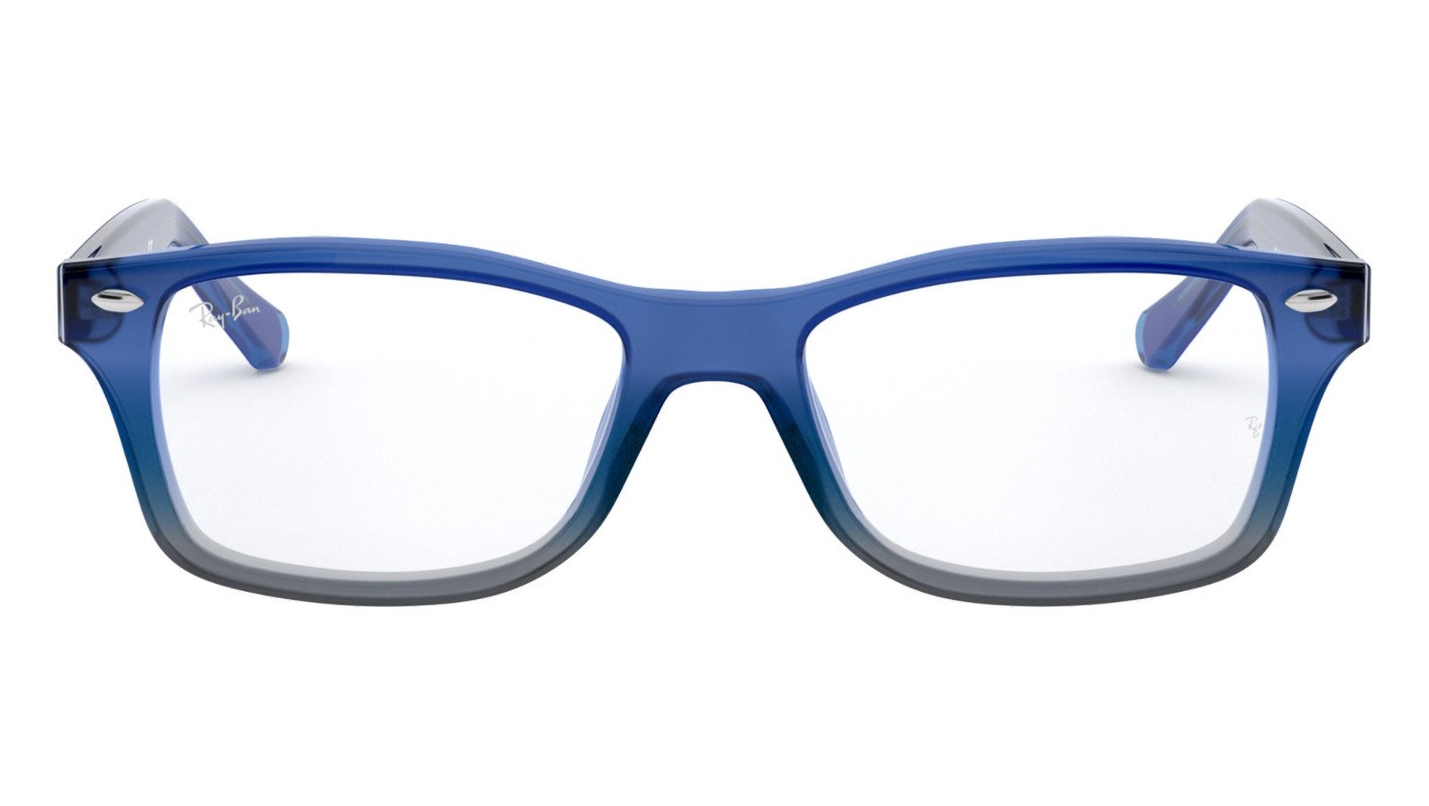 Occhiali da vista Ray-Ban Kids RY1531 color sfumato blu grigio iridescente in acetato codice colore 3647. Forma unisex quadrata full rim con lenti demo. Con custodia originale e garanzia. Rivenditore autorizzato Ray-Ban.