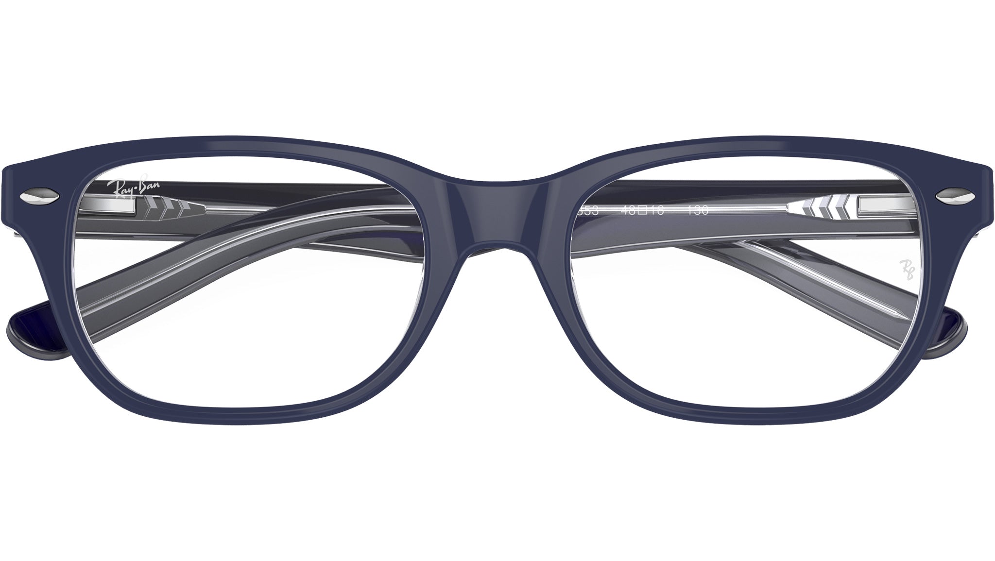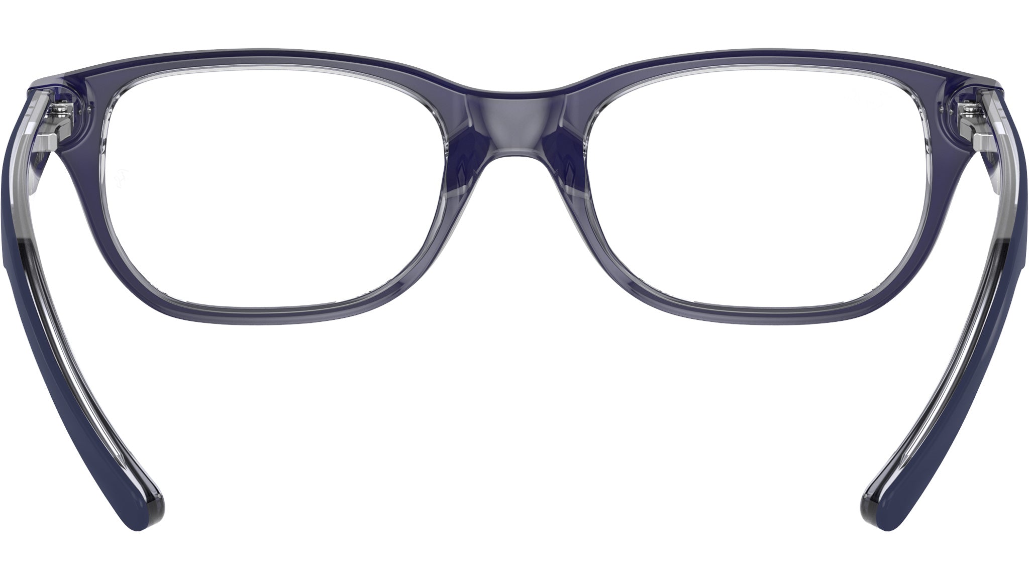 Occhiali da vista Ray-Ban Kids RY1555 color blu su trasparent in acetato codice colore 3853. Forma quadrata full rim con lenti demo. Con custodia originale e garanzia. Rivenditore autorizzato Ray-Ban.