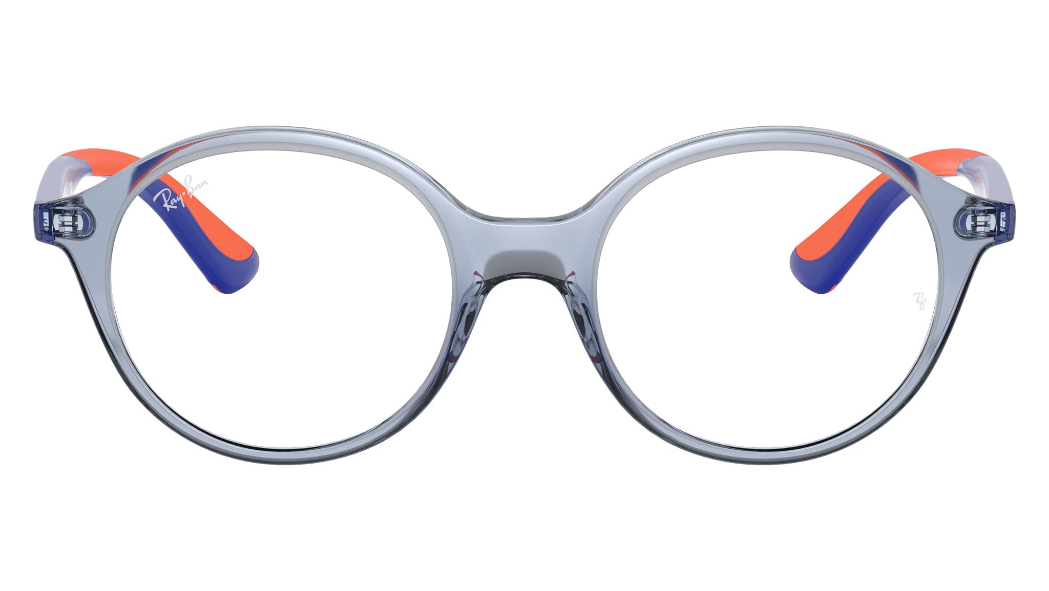 Occhiali da vista Ray-Ban Kids RY1606 color lampada trasparente blu in acetato codice colore 3860. Forma rotonda full rim con lenti demo. Con custodia originale e garanzia. Rivenditore autorizzato Ray-Ban.