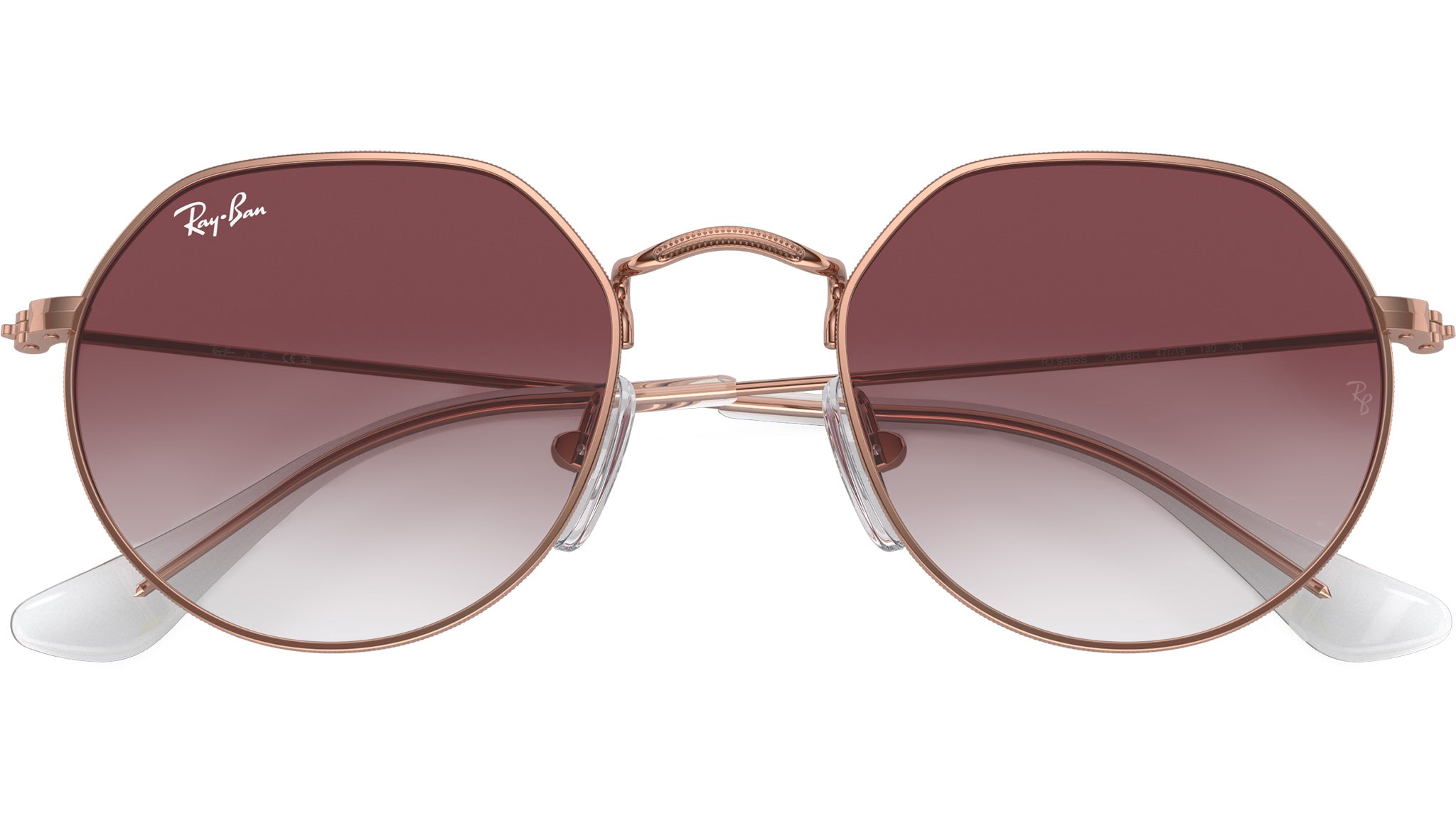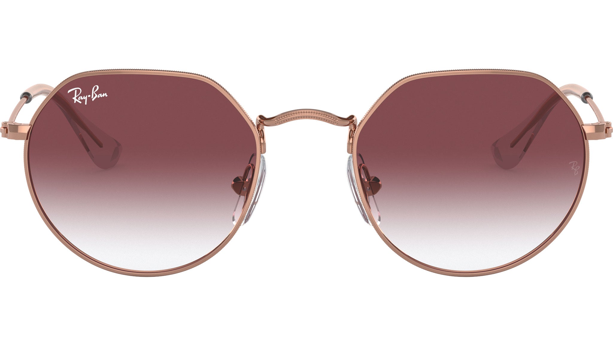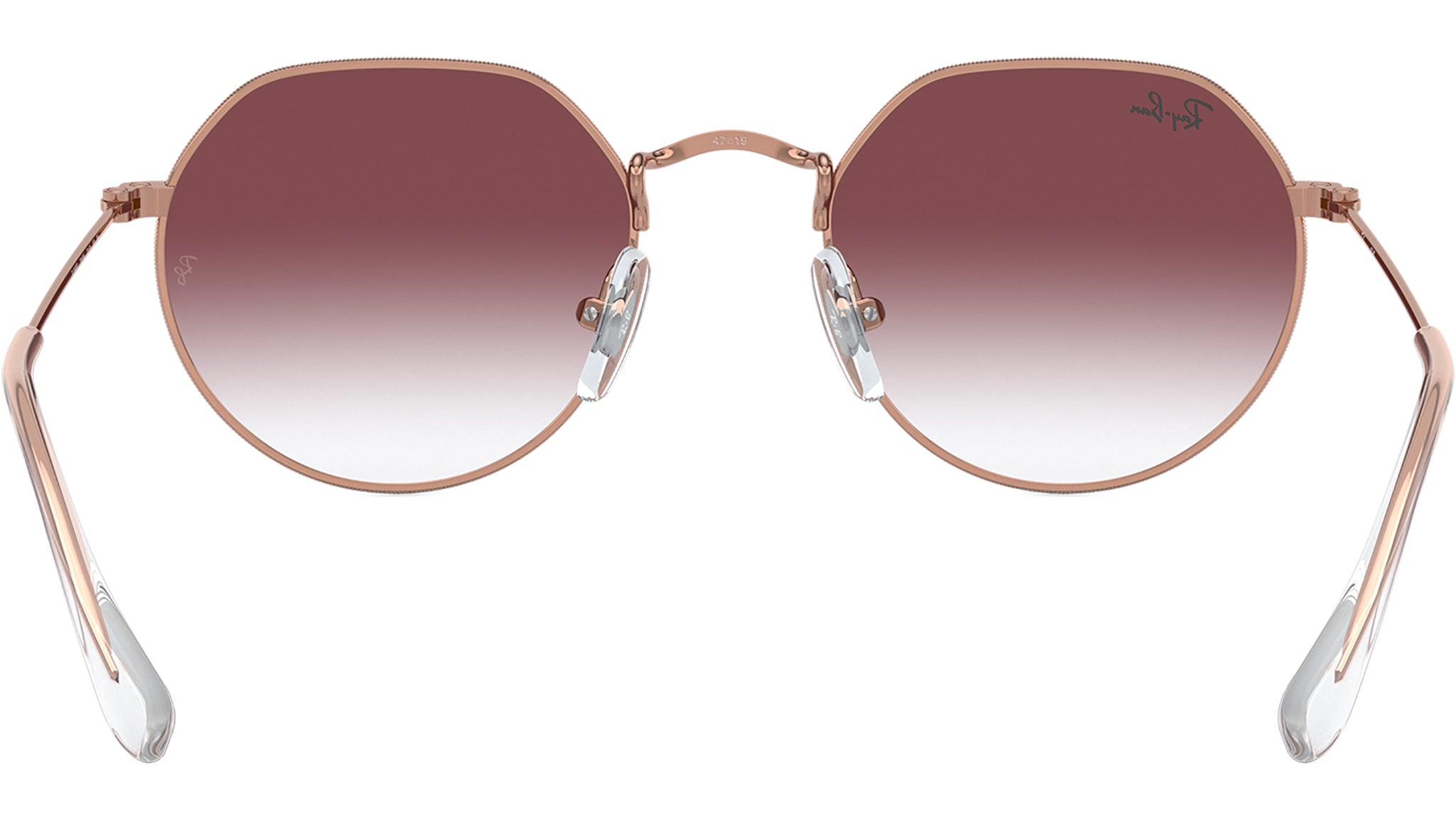 Occhiali da sole Ray-Ban Junior Jack RJ9565S 291/8H unisex con montatura geometrica in metallo oro rosa e lenti in policarbonato color sfumato viola scuro. Naselli regolabili. Linea: Kids Originals. Codice modello: 0RJ9565S. Codice colore: 291/8H. Rivenditore autorizzato Ray-Ban online. Gli occhiali vengono consegnati con custodia e accessori originali e sono coperti dalla garanzia ufficiale di 12 mesi del produttore.