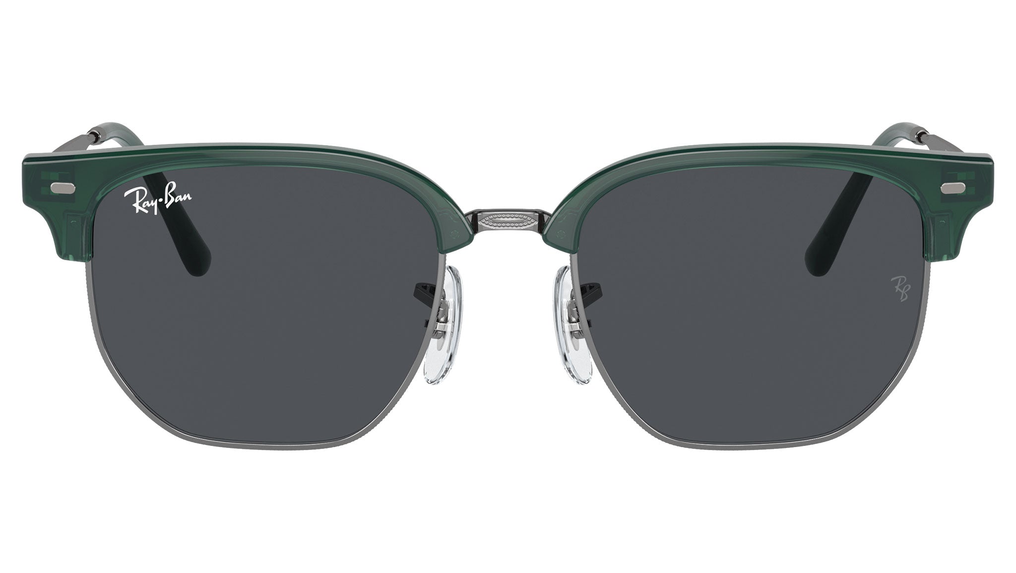 Occhiali da sole Ray-Ban Kids RJ9116S in iniettato codice colore 713087 verde opalino su canna di fucile. Forma geometrica unisex full rim con lenti grigio scuro. Con custodia originale e garanzia. Rivenditore autorizzato Ray-Ban.
