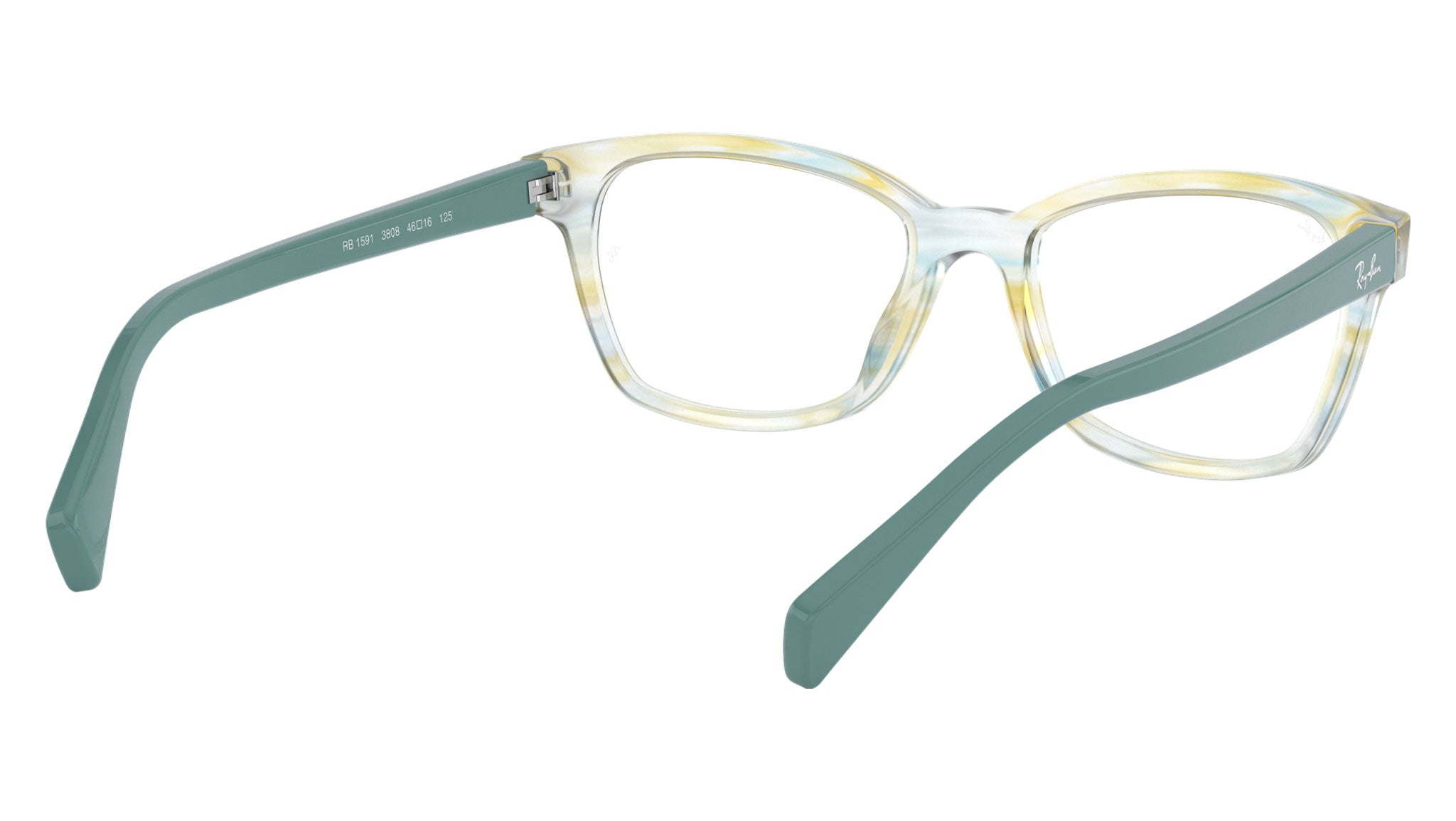 Occhiali da vista Ray-Ban Kids RY1591 color verde a righe in acetato codice colore 3808. Forma quadrata full rim con lenti demo. Con custodia originale e garanzia. Rivenditore autorizzato Ray-Ban.