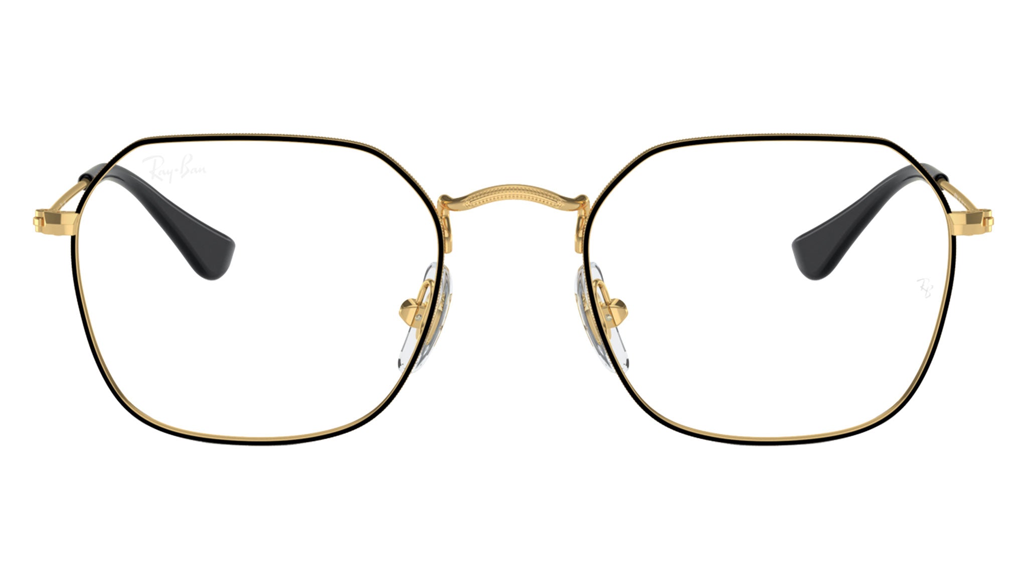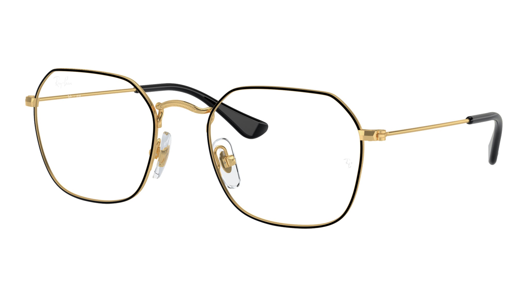 Occhiali da vista Ray-Ban Kids RY9594V color nero su oro in metallo codice colore 4086. Forma unisex geometrica full rim con lenti demo. Con custodia originale e garanzia. Rivenditore autorizzato Ray-Ban.