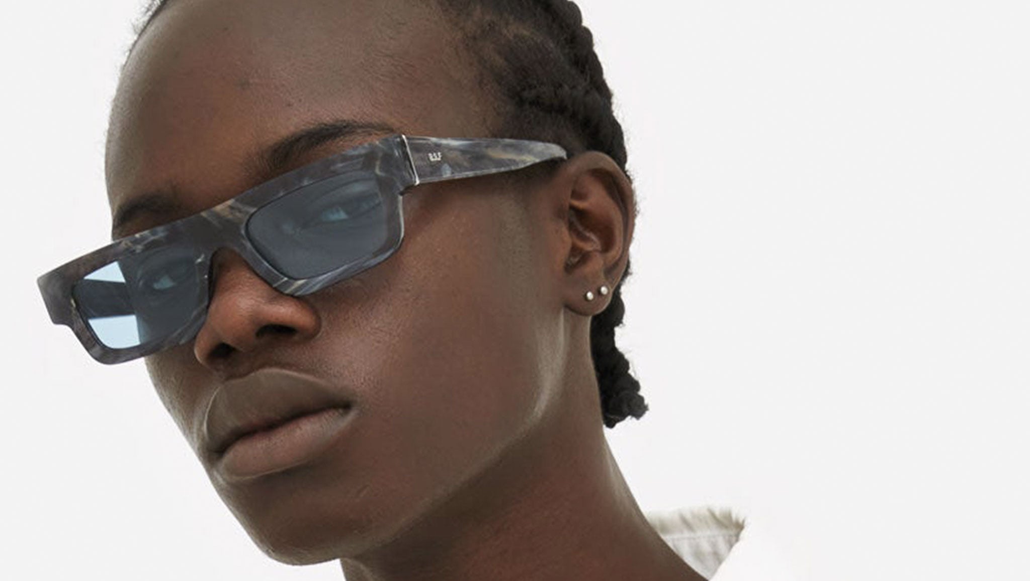 Colpo is an iconic contemporary silhouette that merges vintage references with the current zeitgeist. With its low, compact profile, Colpo is inspired both by chunky 1960s frames as well as futuristic visions. Its straight, sharp brow-line makes this a statement piece of eyewear. Colpo will be the ubiquitous, stand-out model of the season, seen on the streets of Milan and Paris, New York and Tokyo. This version of Colpo comes with a shiny marble effect acetate and blue light lenses.