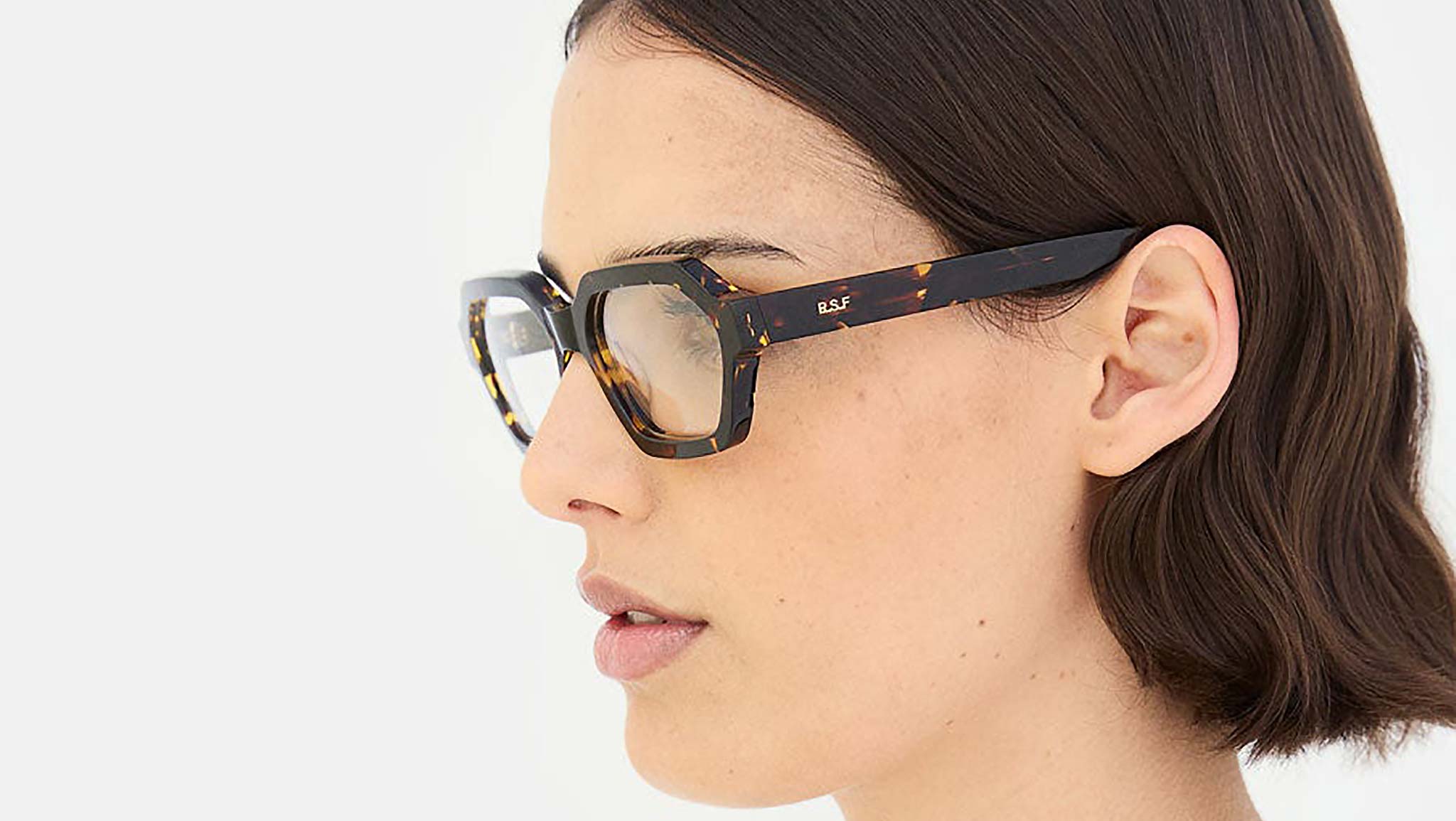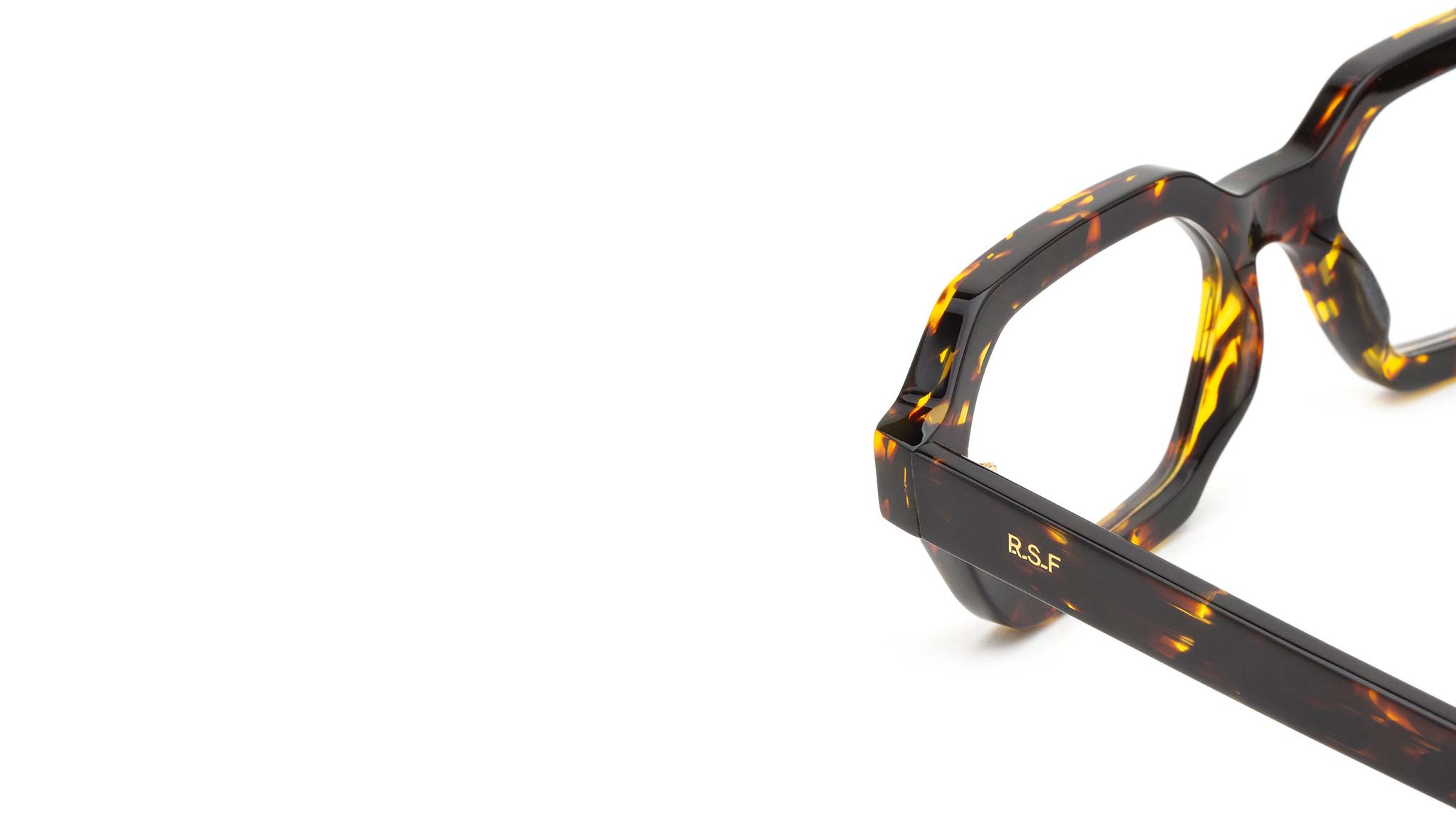 Pooch is a unique frame characterised by an asymmetrical hexagonal design. A modern, fresh shape, Pooch features a low, wide profile with a lowered nose bridge and straight, sleek temples. Designed for everyday use, this is a comfortable yet stand-out Optical silhouette. This version comes in a rich gold Havana acetate, elevating its unique geometric design. Sizes: R Lens Width: 55 mm. Frame Front: Frame Side: 145 mm. Product Code Size R: 3BB