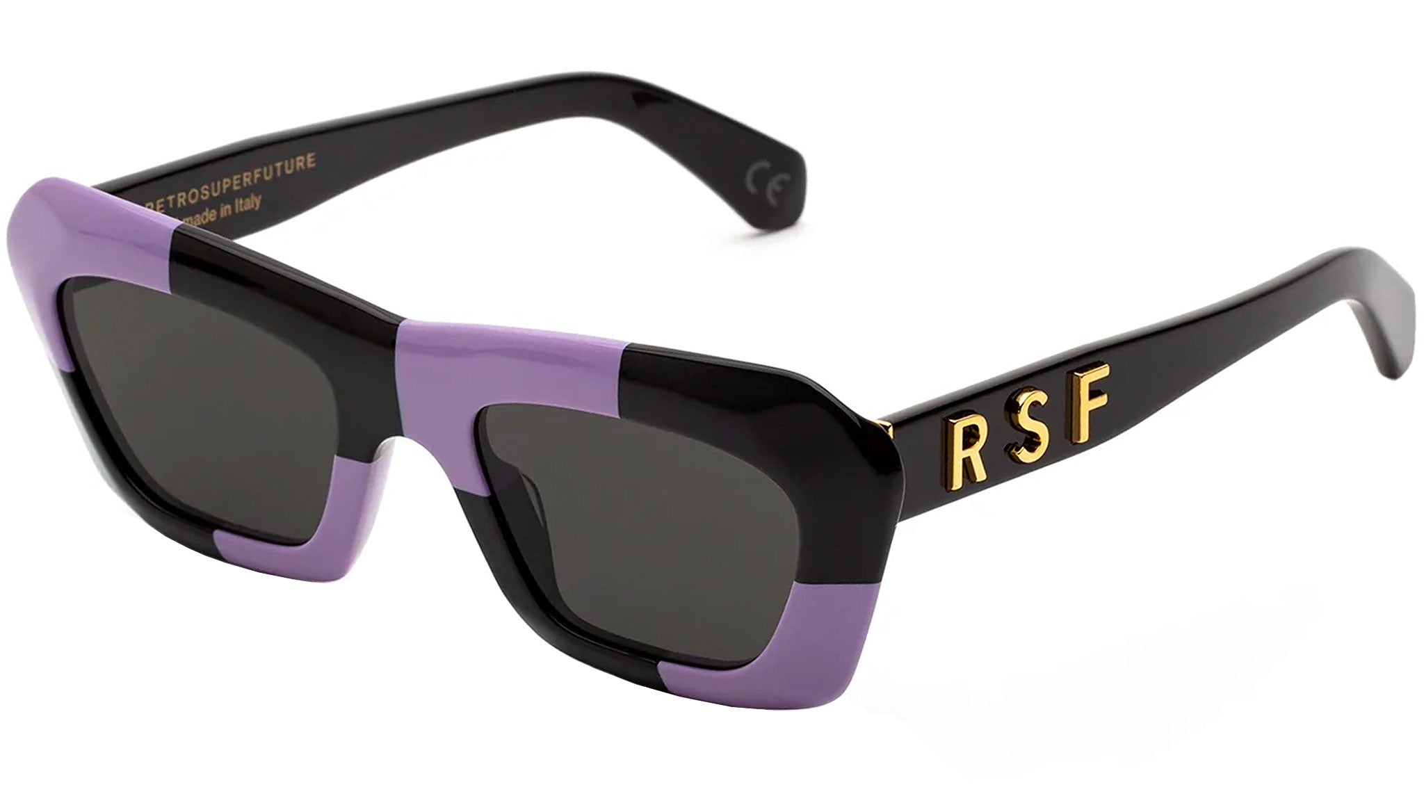 Zenya is a statement piece of eyewear: a chunky, oversized frame, designed as a modern interpretation of timeless cat-eye frames. The v-shaped brow-line gives a unique flair to these sunglasses for an unmistakably cool piece that will elevate any style. A highly recognisable, iconic silhouette, you can imagine seeing Zenya everywhere during the summer months. This version of Zenya comes in a unique checked acetate in purple and black with essential black lenses. The box contains a semi-hard case and a cleaning cloth.