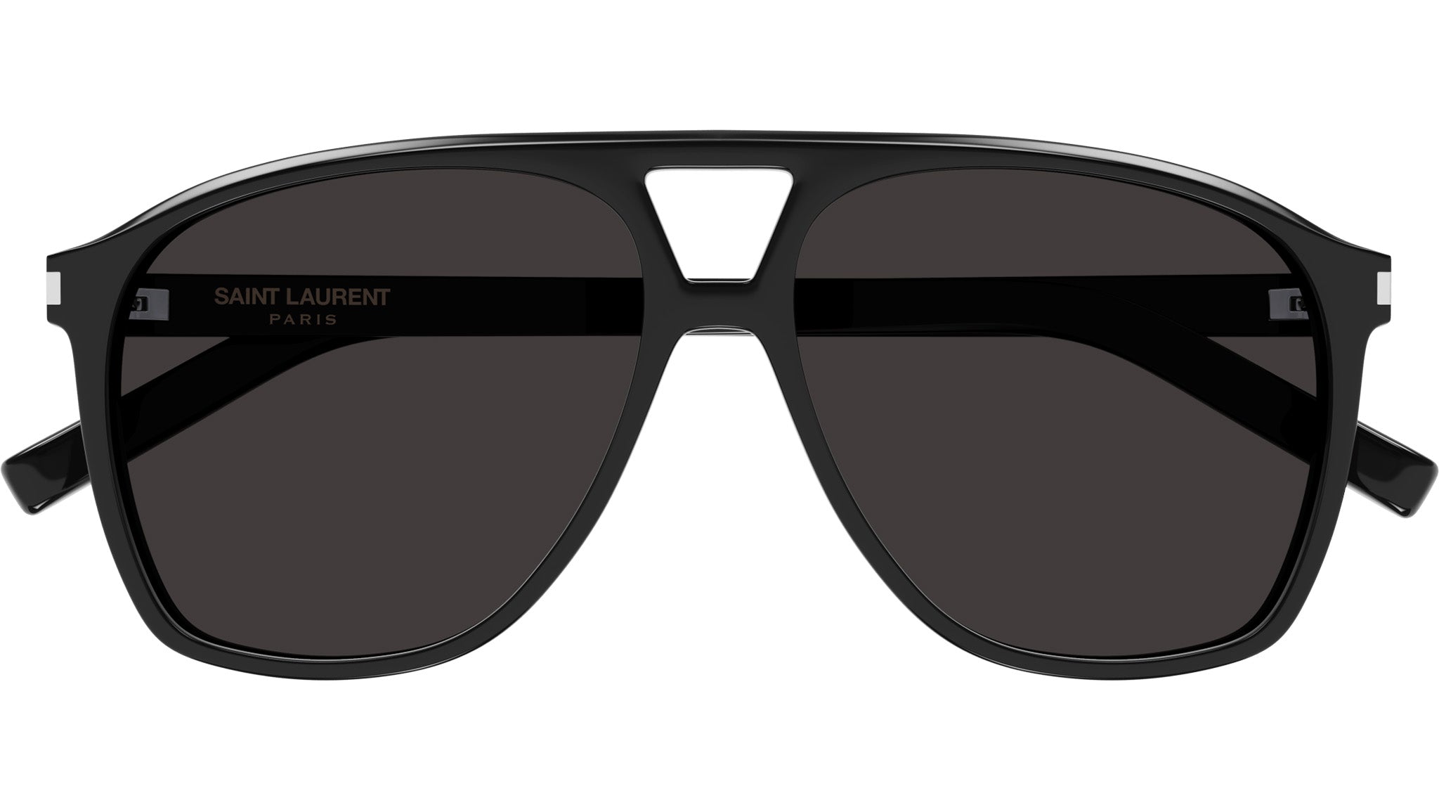 Occhiali da sole Saint Laurent linea New Wave modello SL 596 DUNE variante colore 001 nero lucido tinta unita con lenti color nero.