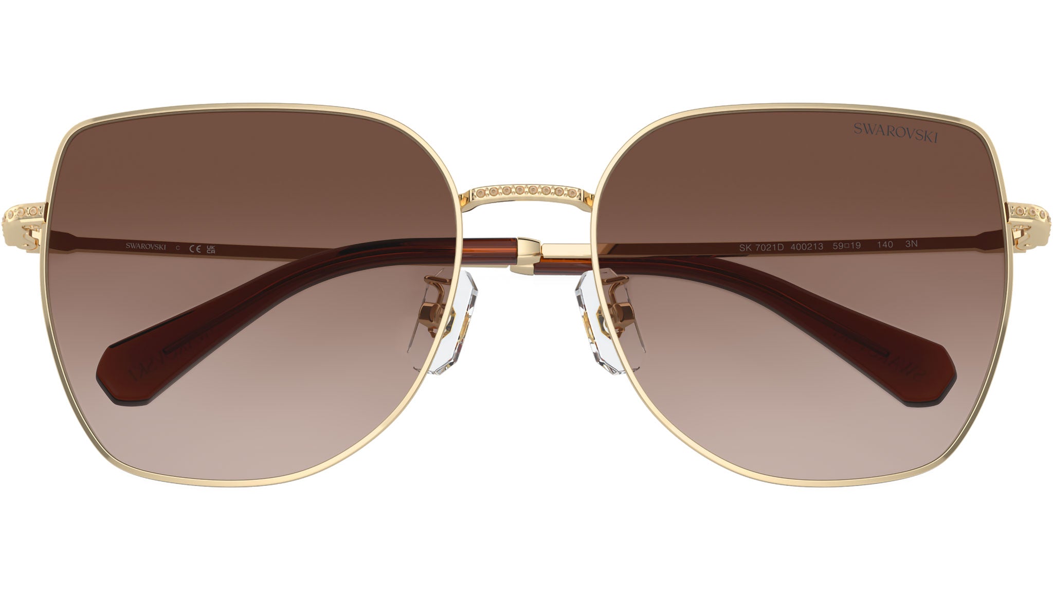 Occhiali da sole Swarovski donna modello 7021D full rim in metallo oro pallido con lenti marrone sfumato base 2. Vestibilità a ponte basso. Linea: Science of Elegance. Codice brand: 0SK7021D. Codice colore: 400213. Rivenditore autorizzato online Swarovski Eyewear. Ogni prodotto Swarovski viene consegnato con astuccio originale e accessori ed è coperto da garanzia del produttore di 12 mesi.